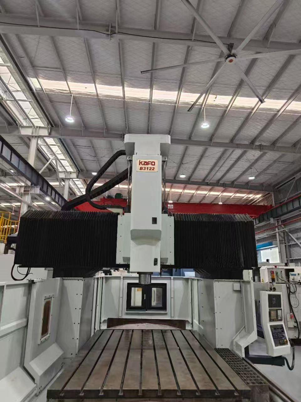 数控系统:发那科MD三轴行程:3100*2200*850mm工作台尺寸:3000*2100mm工作台最大承重:14000kg主轴转速:6000rpm主轴:BT50主电机功率:22/26kw龙门宽:2200mm龙门高:1300mm