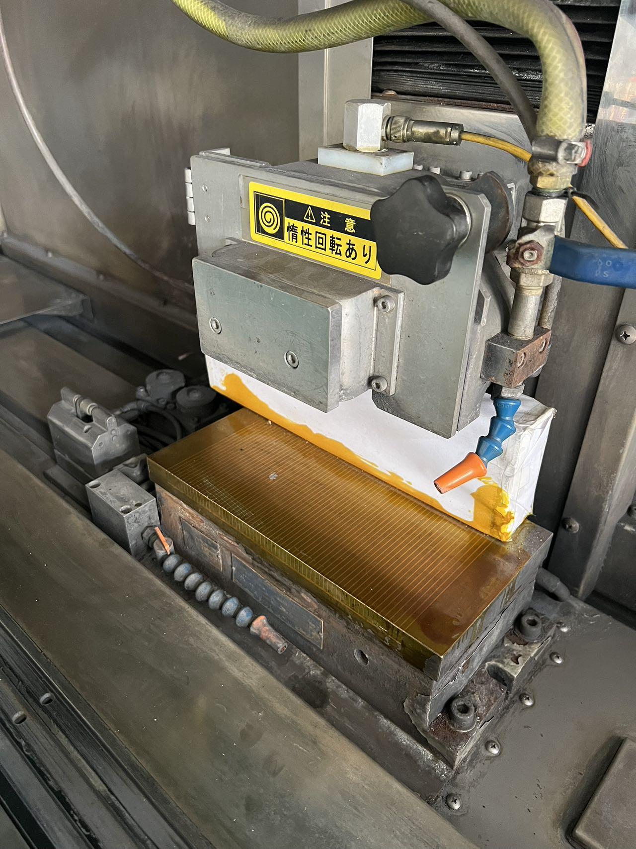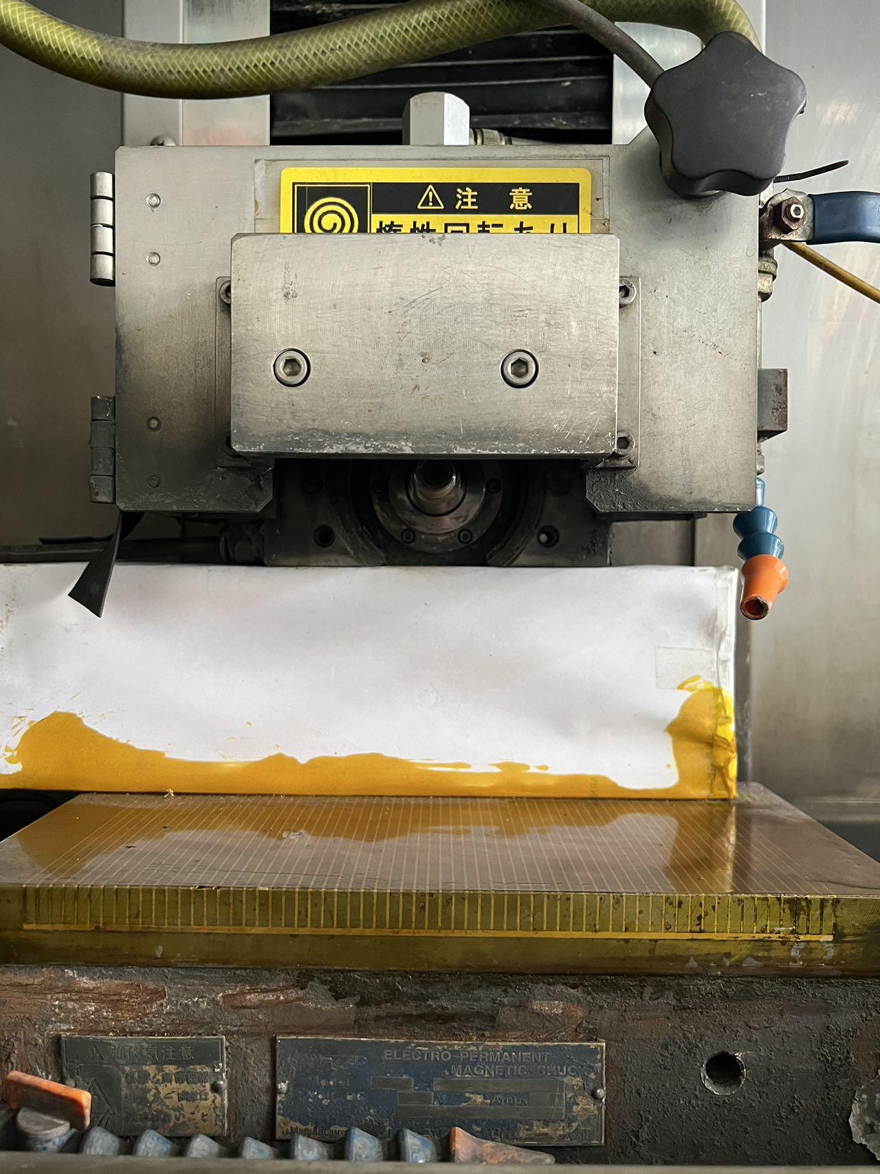 数控系统:FANUC Oi-MC工作台作业面积(左右*前后):450*150mm静压主轴,静压导轨导轨最大行程:620mm最大线速:45m/min最小设定单位:0.0001mm最大装载重量:100kg砂轮外径× 宽度×内径:Φ70~180×15×Φ31.75mm砂轮轴转速:1500~15000rpm砂轮轴旋转范围:±12º砂轮轴上下移动量:415mm砂轮轴进给速度:1000mm/min最小设定单位:0.0001mm砂轮轴电机:2.5kW前后轴电机:1kW上下轴电机:1kW导轨电机:5kW导轨静压泵电机:2kW 导轨静压油加热电机:2.5kW