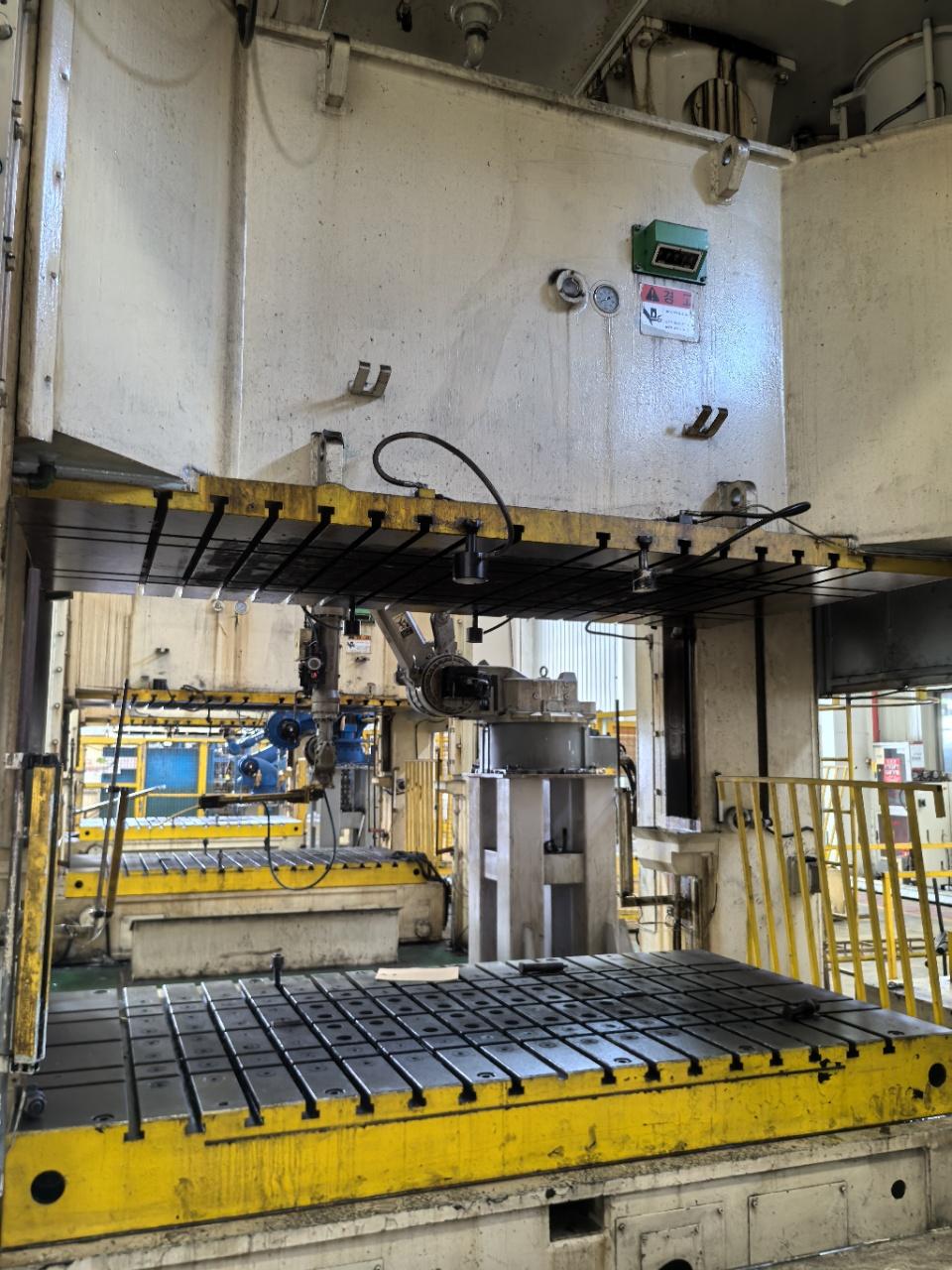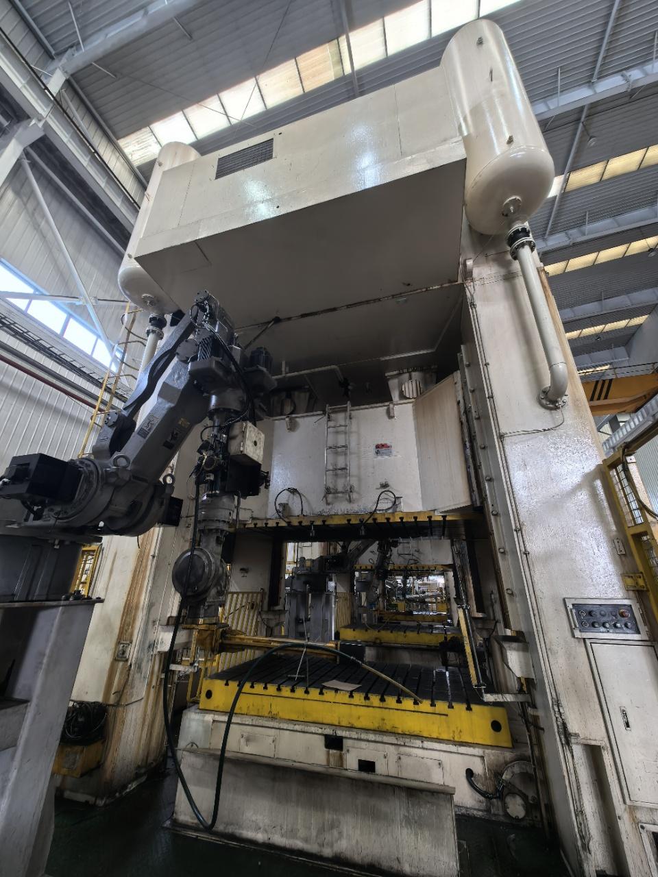 冲压能力:800T行程数:10-20spm行程长:600mm最大闭合高度:1200mm滑块调整量:600mm上工作台面积:3000×1600mm下工作台面积:3000×1600mm主电动机:110kw输入:380v气垫脚4个带下顶缸