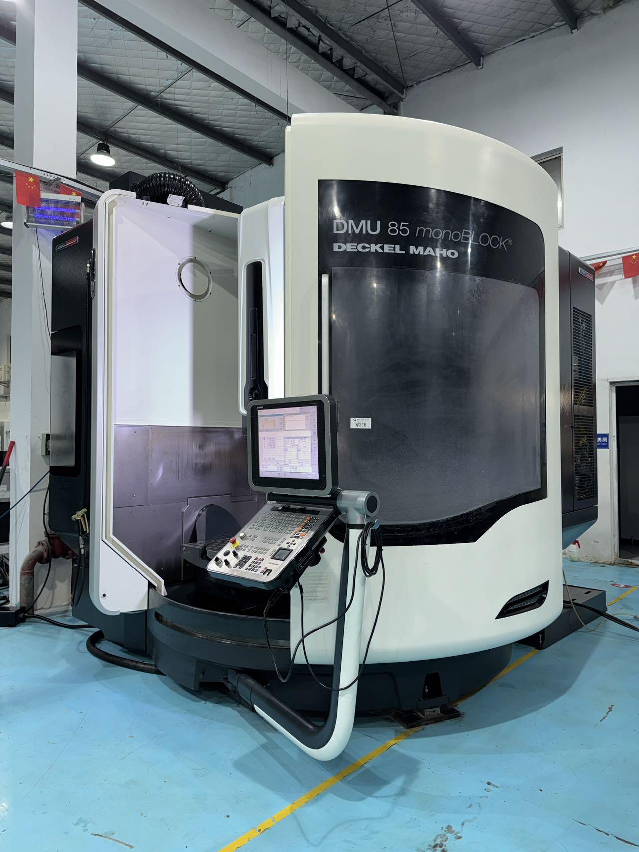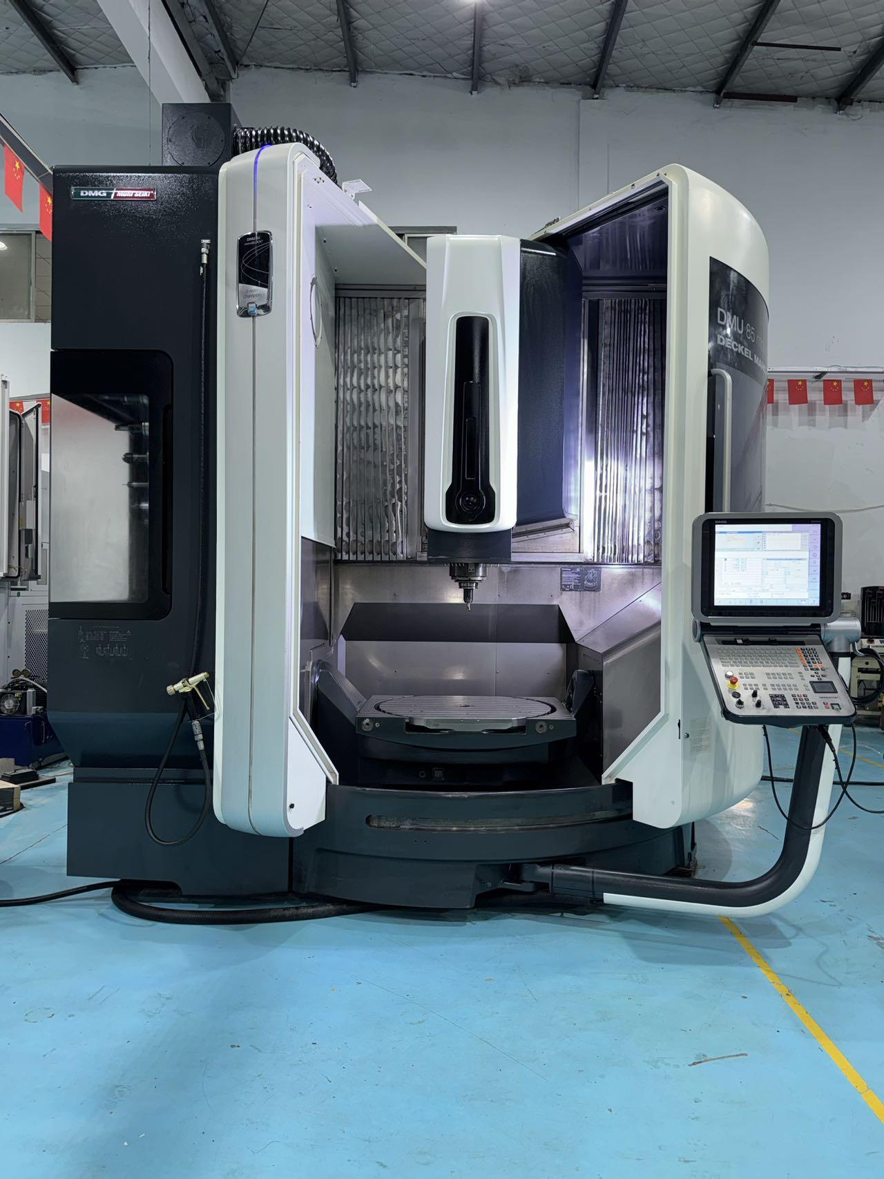数控系统:海德汉三轴行程:935×850×650 mmA轴:-120°~+120°A轴分度精度:0.001C轴:360°(连续旋转)C轴分度精度:0.001最大加工直径:1040 mm最大加工高度:590 mm回转摆动工作台:工作台尺寸:850×750 mm工作台载重:1500 KG刚性工作台:工作台尺寸:1000×750 mm工作台载重:2000 KG刀库容量:30,ATC主轴:HSKA-100主轴转速:10000 转配置:配40公斤中心出水