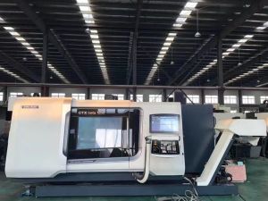 回转直径:820mm加工直径:820mm加工长度:1500mmX轴行程:870mmY轴行程:500(±250)mmZ轴行程:1598mmB轴行程:-30º~+210º(0.001)C轴行程:360º(0.001)主轴卡盘:15寸主轴转速:1600 rpm主轴端形状:A2-11铣削主轴:CAT 50,10000 rpm,ATC 40尾座锥度:M.T.5尾座行程:1466系统:Mazatrol MTARiX