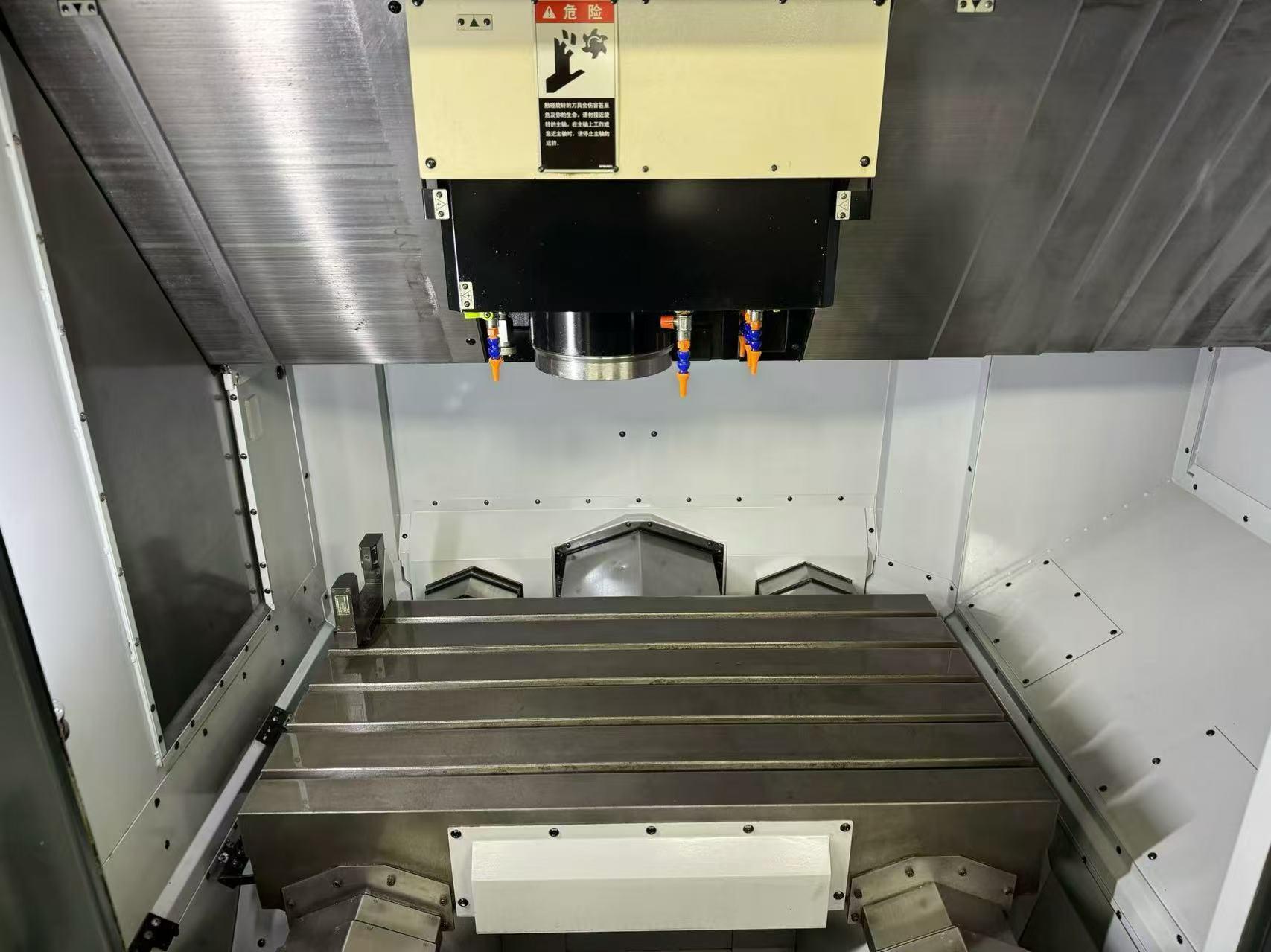 数控系统:Professional 5三轴行程:900*500*450mm工作台尺寸:1050*550mm主轴转速:HSK-A63主轴转速:20000rpm有无对刀仪:波龙激光对刀仪有无光栅尺:全轴光栅尺每轴驱动方式:丝杆排屑方式:链式排屑主轴到台面的距离:590mm主轴传动方式:电主轴刀库形式:盘式刀库刀柄型号:BBT40 刀库:15把机床结构:龙门式有无探头:马波斯探头外形尺寸:2500*3300*2900mm导轨方式:二硬轨一线轨带油冷机、马波斯探头、排屑机