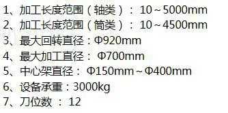 加工长度范围(轴类):10~5000mm