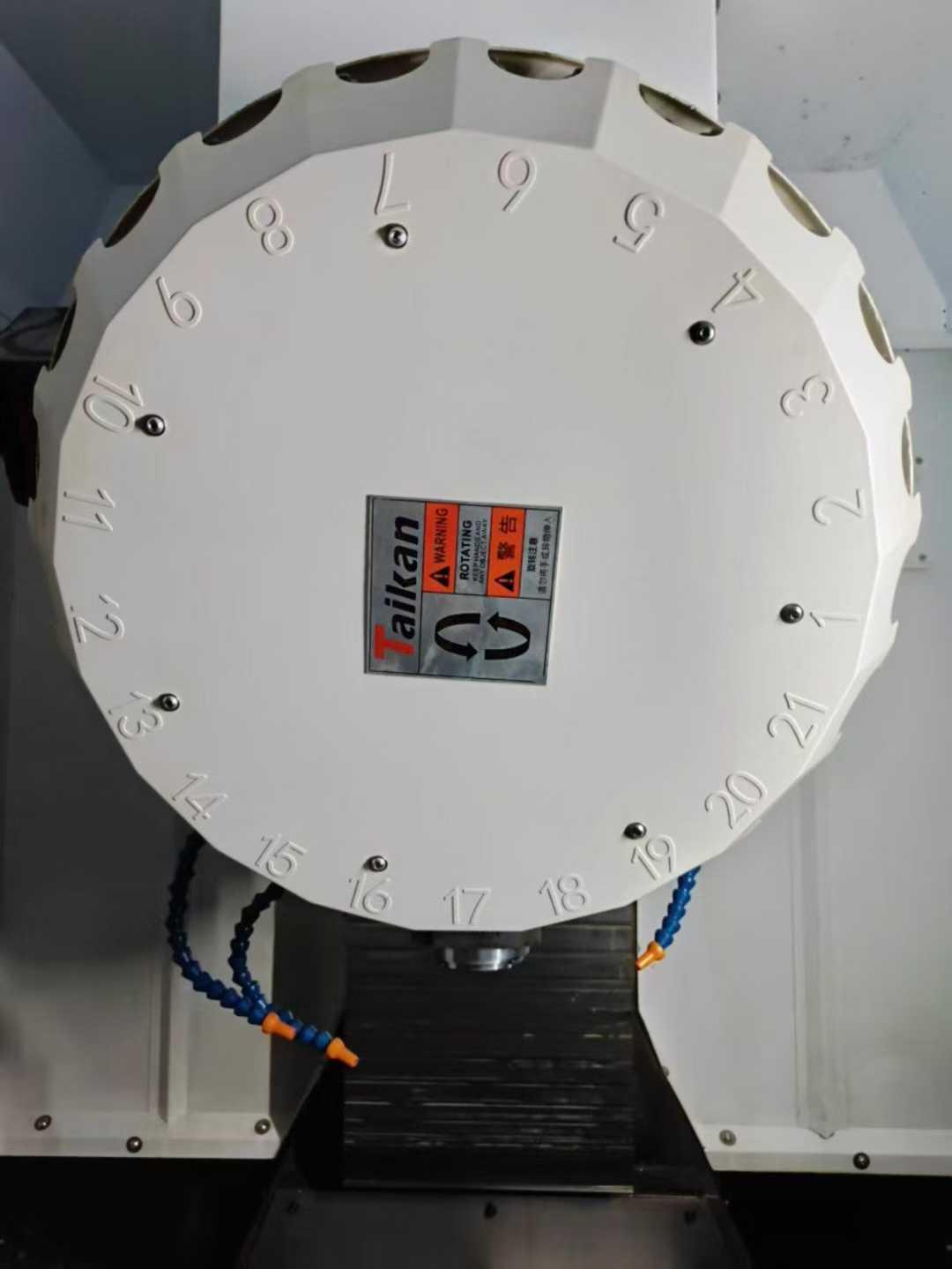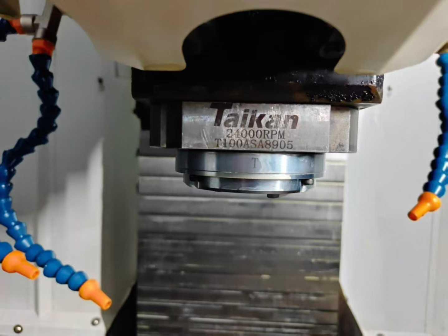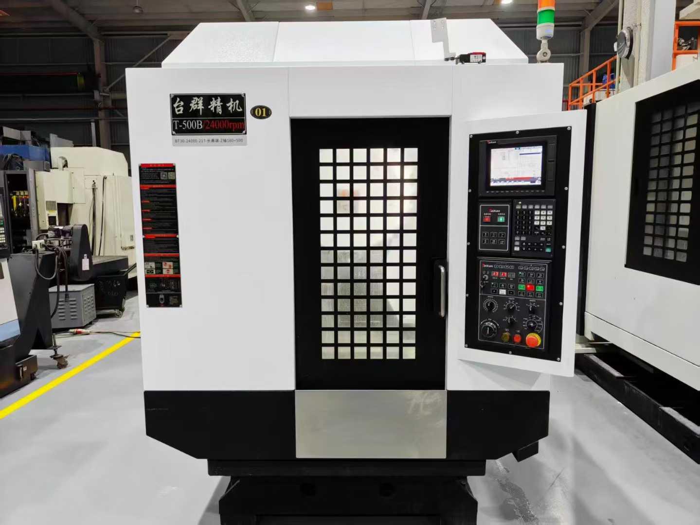三轴行程:500*400*320mm主轴鼻端到工作台面距离:160-480mm立柱中心支立柱导轨面距离:445mm工作台尺寸:620*400mm工作台承重:250kgT型槽:3*14*120mm电机功率:2.2/3.7kw电机扭矩:7/17.7Nm主轴转速:24000rpm主轴直径:100mm主轴锥度:BT30切削进给速度:1-30000mm/min三轴快移速度:48m/min定位精度:0.006mm重复定位精度:0.004mm刀库容量:21刀具最大长度:200mm刀具最大直径:60/80mm外形尺寸:1600*2600*2300mm机器重量:3100kg