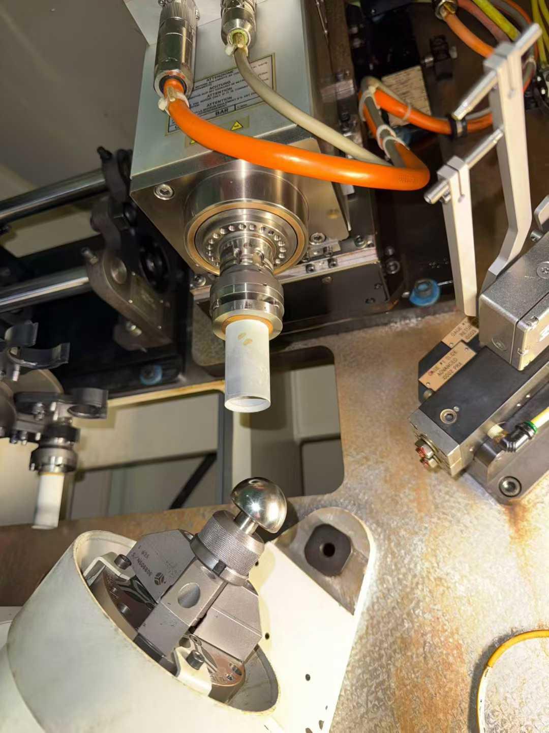 数控系统: MicroSens可旋转角度: ±90°加工半径: 75 mm工件(主轴)转速: 0-2000 RPM工具(主轴)转速: 1500 ~ 15000 RPM主轴径向(工件夹持方向)调节行程: 约 ±5 mm主轴轴向(工件长度方向)进给行程: 约 20 ~ 50 mm超精研石(加工工具)径向进给行程: ≤ 1 mm超精研石的摆动行程: 约 5 ~ 15 mm夹具调整行程: 工件夹具的径向定位调整行程约 ±10 mm轴向定位行程: 30 ~ 100 mm表面粗糙度(Ra): ≤ 0.03 微米球面垫片圆度: 2.0 微米表面粗糙度(Ra): ≤ 0.03 微米