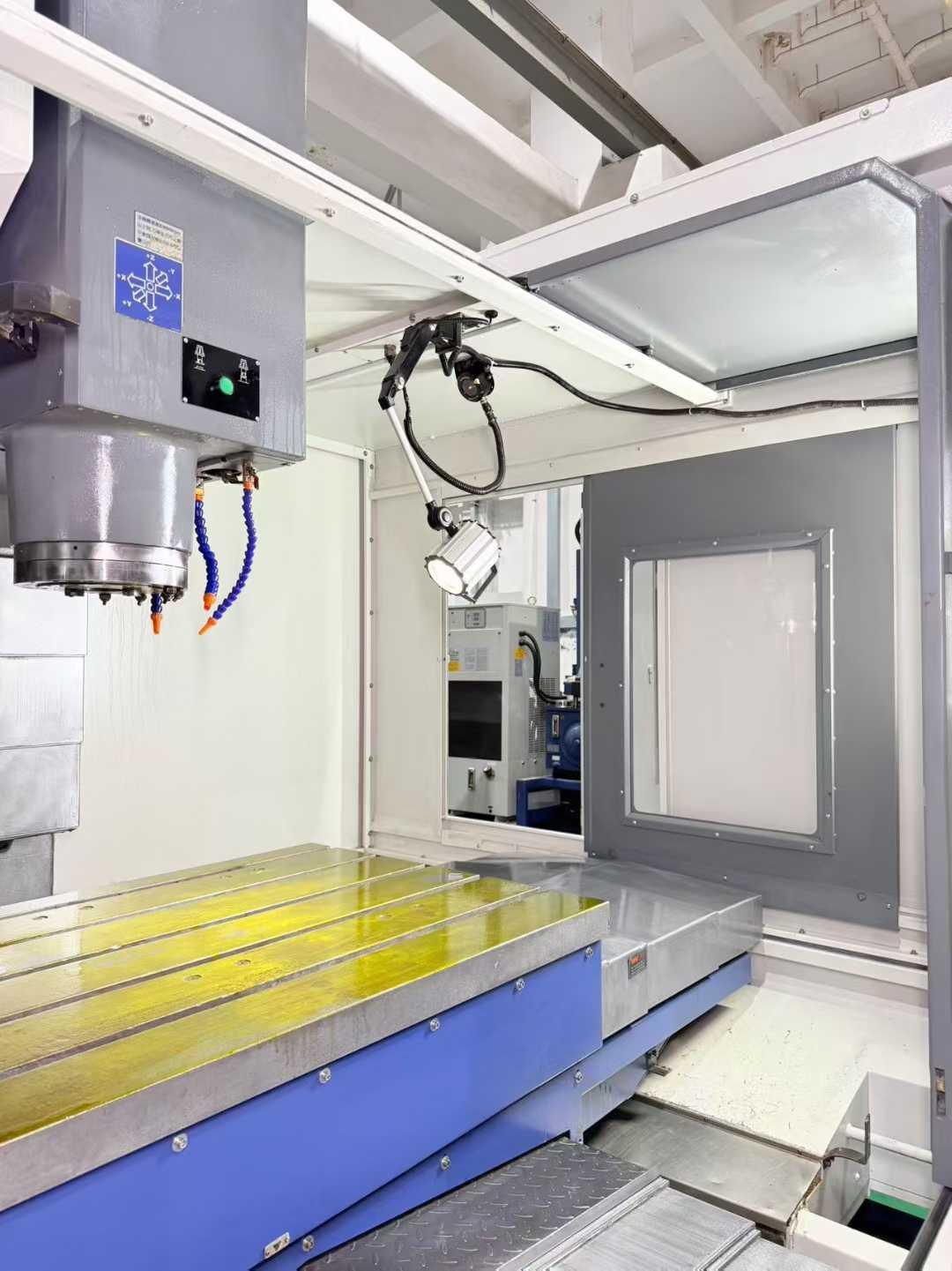 数控系统: 发那科 32i-MB三轴行程: 1120 × 762 × 700 mm工作台尺寸: 1300 × 820 mmT型槽: 5 × 22 × 150 mm主轴锥度: BT50 齿轮头主轴功率: 22 kW主轴转速: 6000 rpm主轴鼻端到工作台面距离: 200-900 mm刀库容量: 24