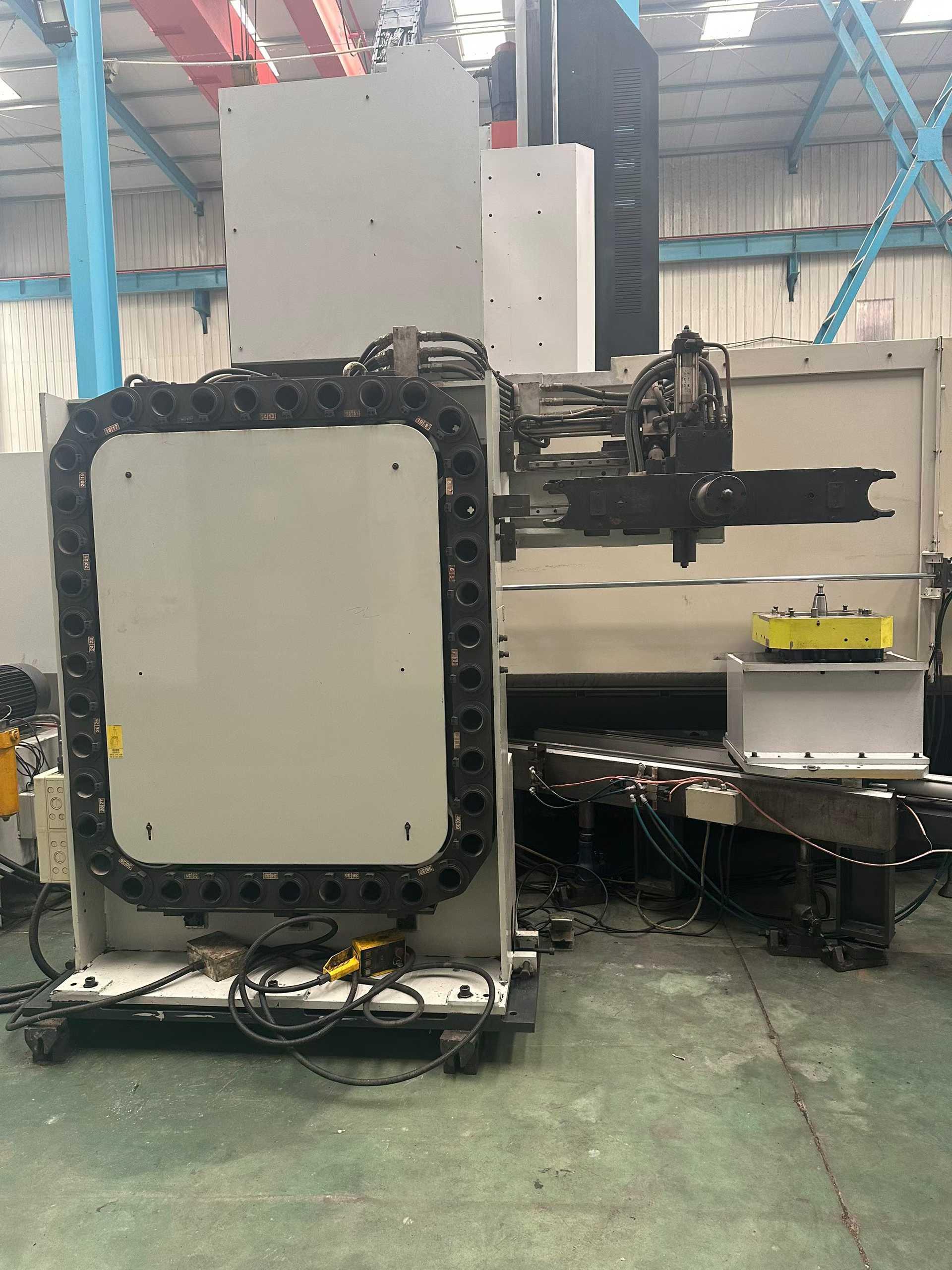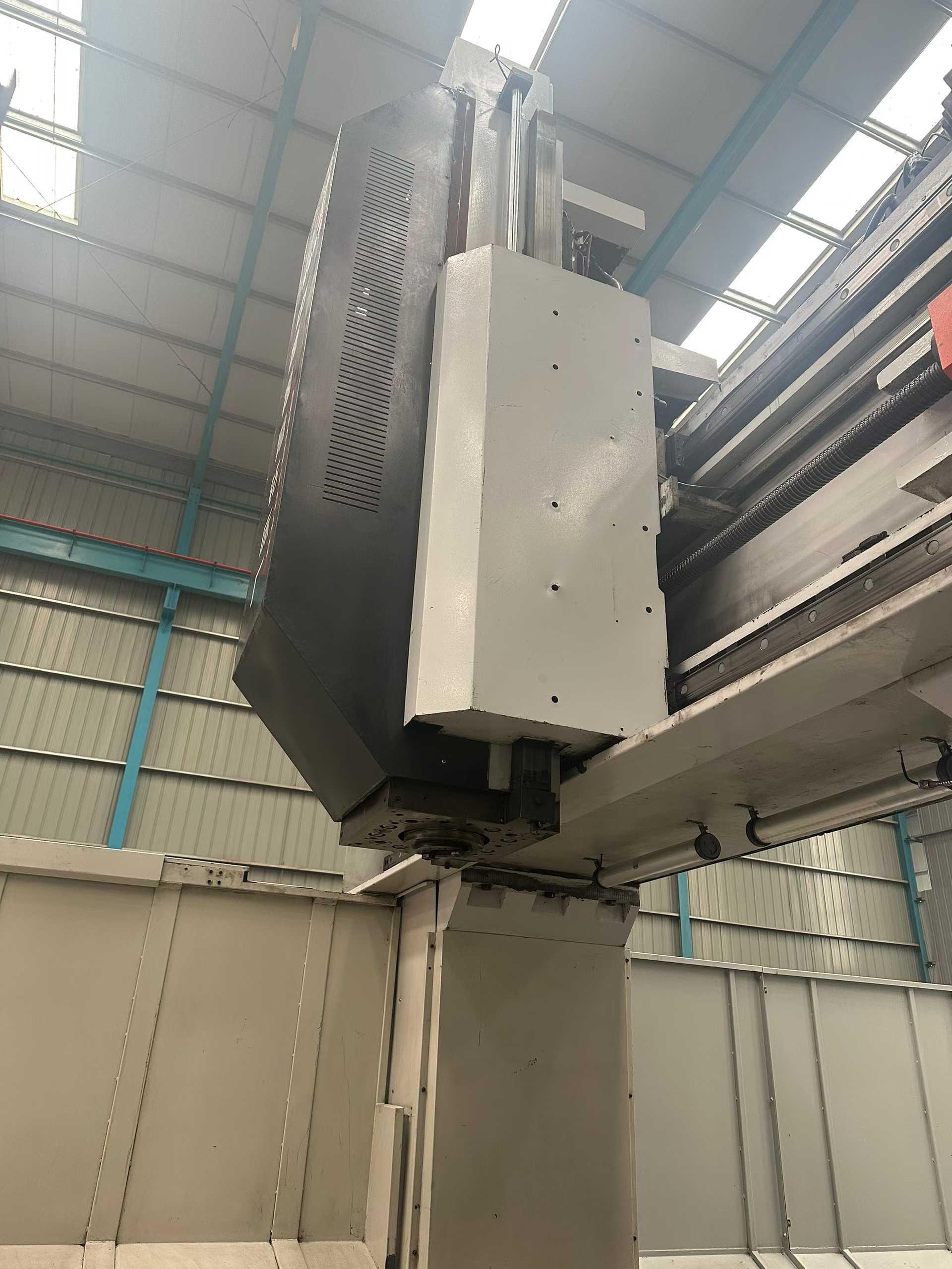 数控系统:发那科 18i三轴行程:4200 * 2700 * 1000mm工作台尺寸:2000 * 4000 mm龙门宽度:2500 mm龙门高度:1300 mm导轨:两线一硬全闭环光栅尺主轴:BT50,齿轮头刀库容量:40把,立卧式刀库带意大利全自动铣头