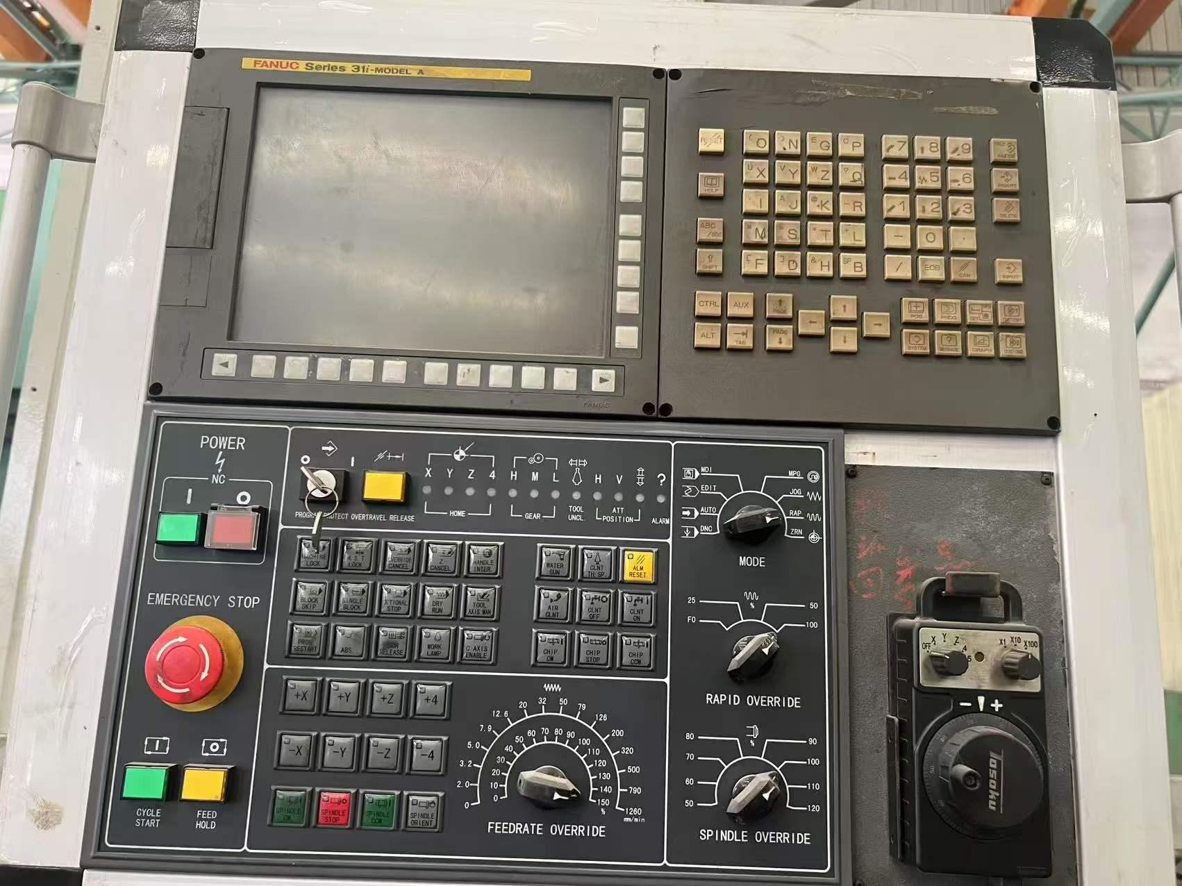 数控系统:发那科31i工作台尺寸:2500mm × 6000mm三轴行程:6200mm × 4200mm × 1250mm三轴快移速度:10m/min (X, Y, Z轴均为10m/min)主轴锥度:BT50导轨类型:两线一硬主轴功率:45 kW(标准)/ 55 kW(可选)龙门宽度:5200mm龙门高度:2500mm工作台承重:20吨