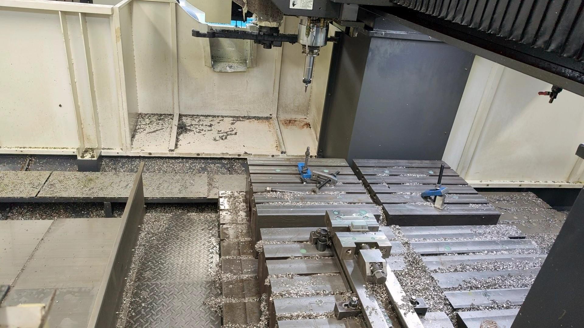 数控系统:发那科 MF Plus工作台尺寸: 2000 × 1400 mm三轴行程:2000 × 1500 × 800 mm龙门宽度: 1500 mm龙门高度: 1250 mm主轴:BT50主轴转速:6000 转/分钟刀库容量:24,机械刀库工作台到主轴鼻端距离: 1100 mm配置:排屑系统: 双螺旋 + 龙头链式