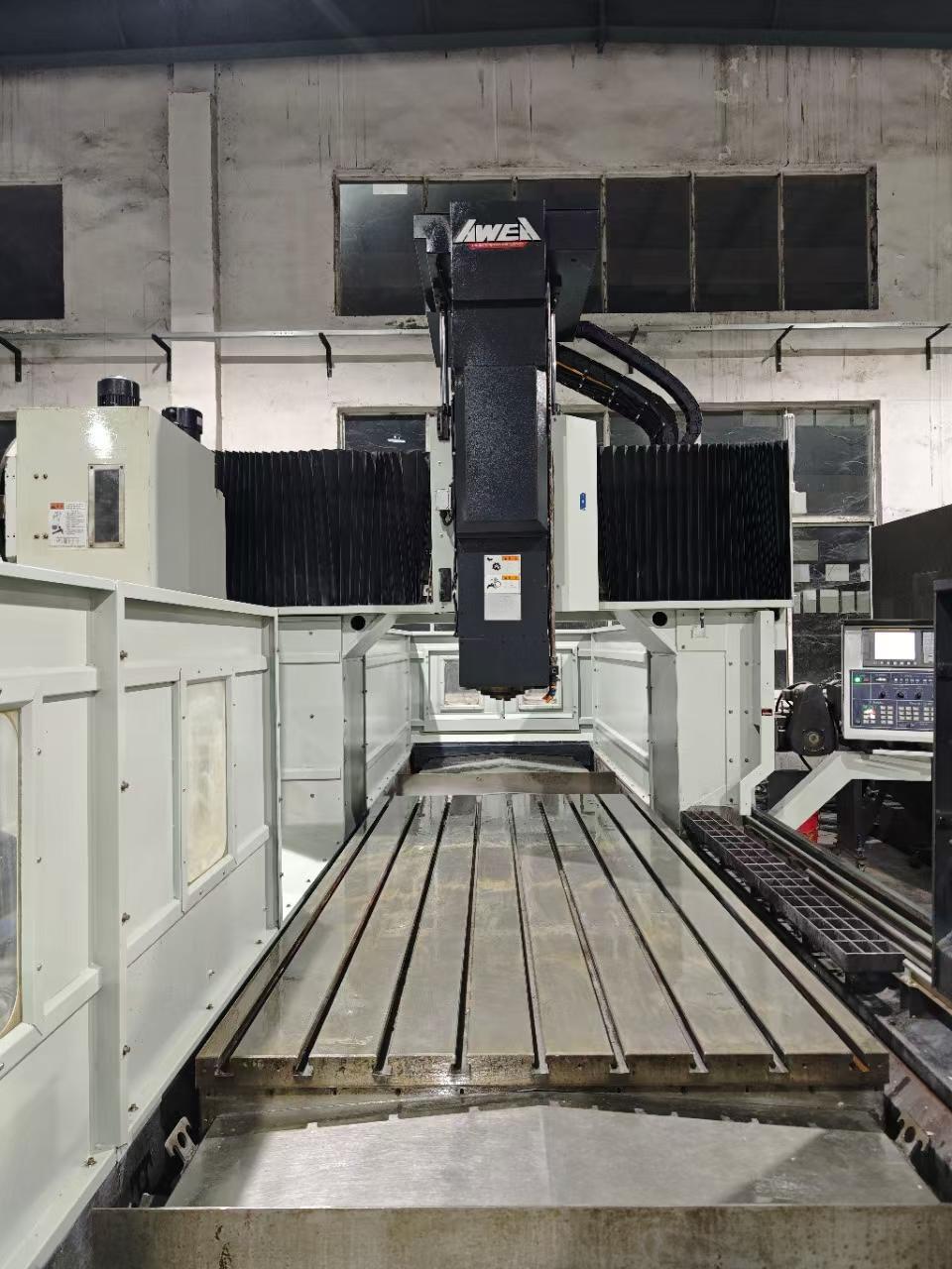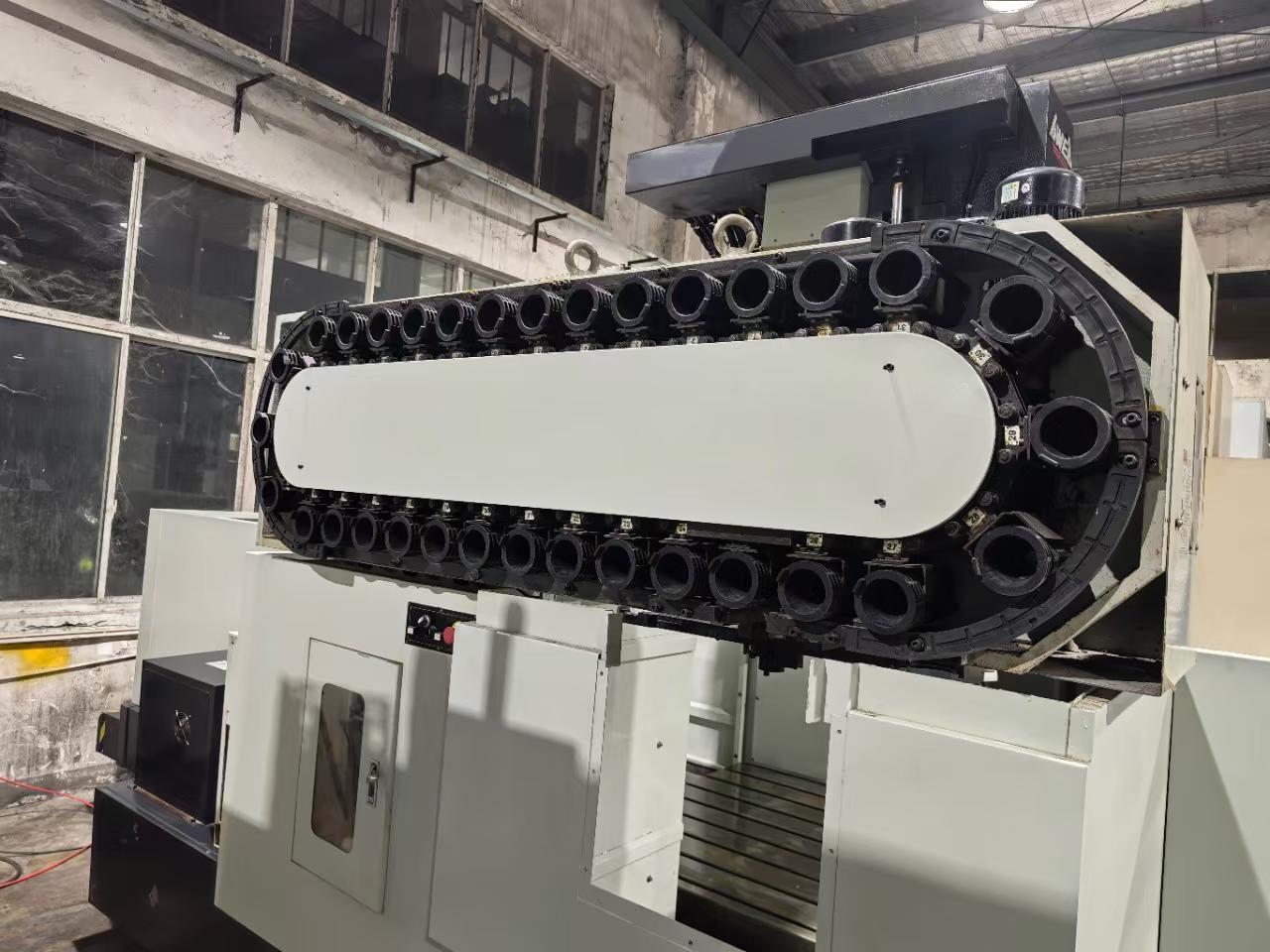 数控系统:发那科 MF三轴行程:3050 * 1730 * 930 mm导轨:两线一硬工作台尺寸:1400 * 3000 mm龙门宽度:1600 mm龙门高度:930 mm主轴:BT50刀库:32,链式配置:主轴带油冷机带链条式排屑机