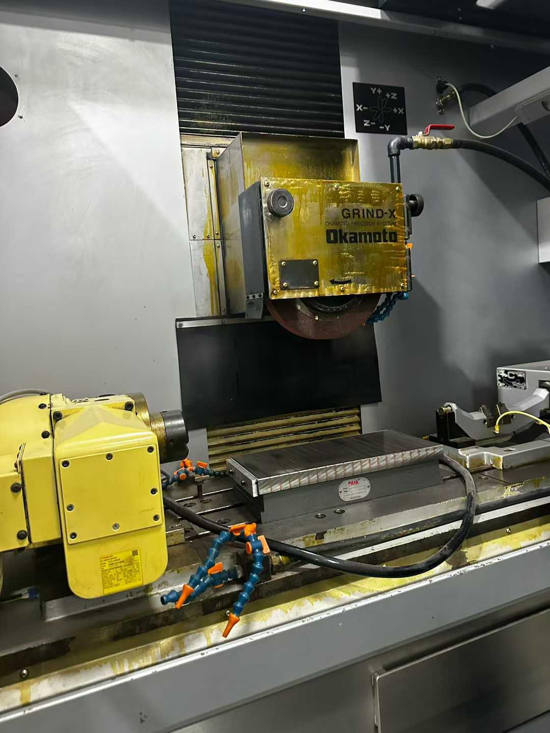 系统:FAMUC series 32i-mb三轴行程1200*440*400mmA轴:360度砂轮直径,宽度,内径:φ305*50*φ127导轨方式:线轨每轴驱动方式:XYZC何服传动工作台:1400*300mm工作台载重:700KG主轴传动方式:电主轴砂轮转数2500rpm主轴进给速度:20000mm/min排方式:磁吸外形尺寸:4700*3275*2166mm进给值:0.0001mm附件:带日研AC轴、二个油冷机