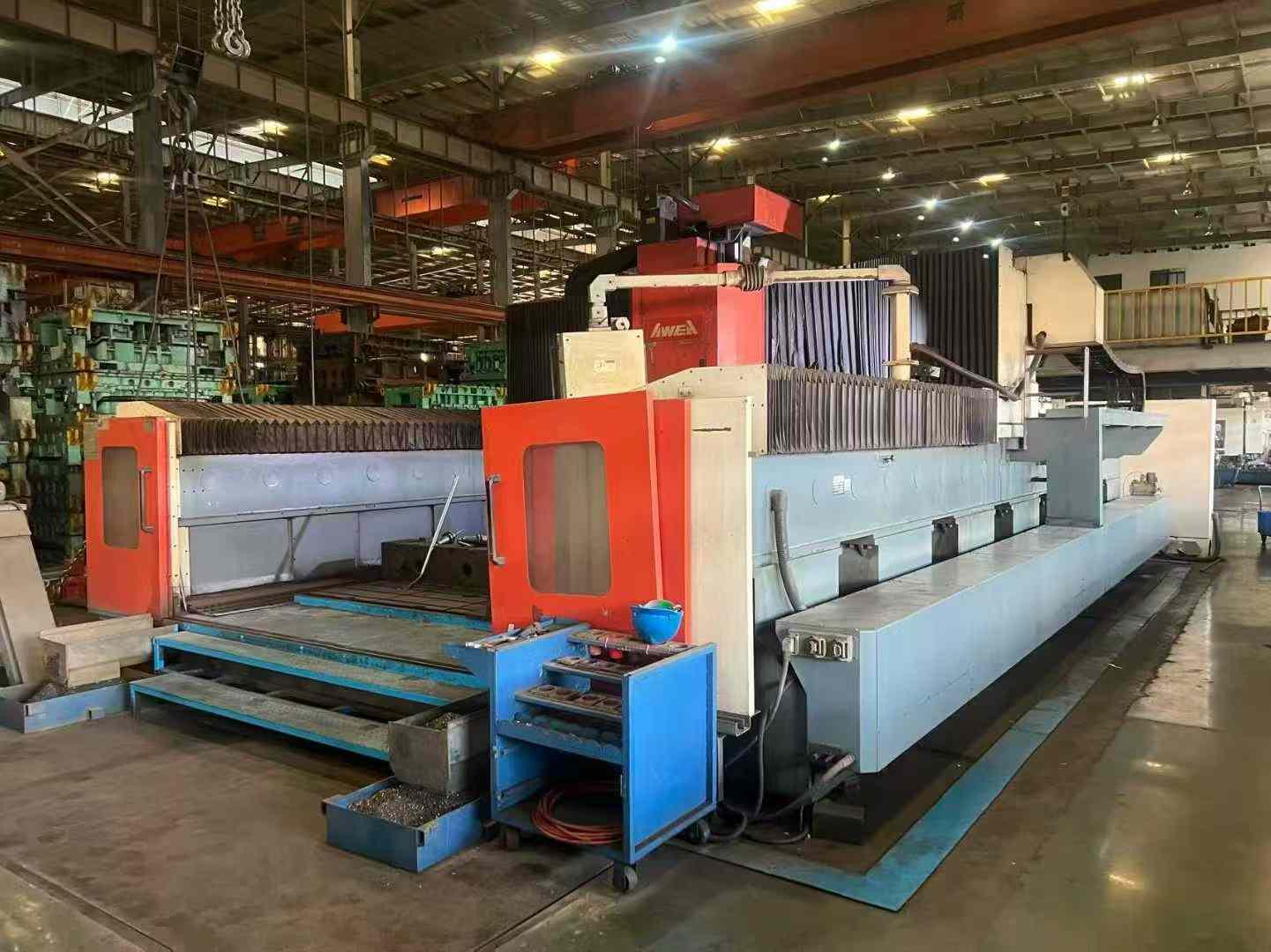 数控系统:发那科 18i工作台尺寸:2800 × 6000 mm龙门高度(门高):1450 mm龙门宽度(门宽):3800 mm三轴行程(X/Y/Z):6000 × 3000 × 1000 mm主轴规格:BT50,齿轮传动主轴主轴转速:7000 rpmY/Z 轴配备光栅尺反馈配置:两个全自动铣头主轴采用油冷系统