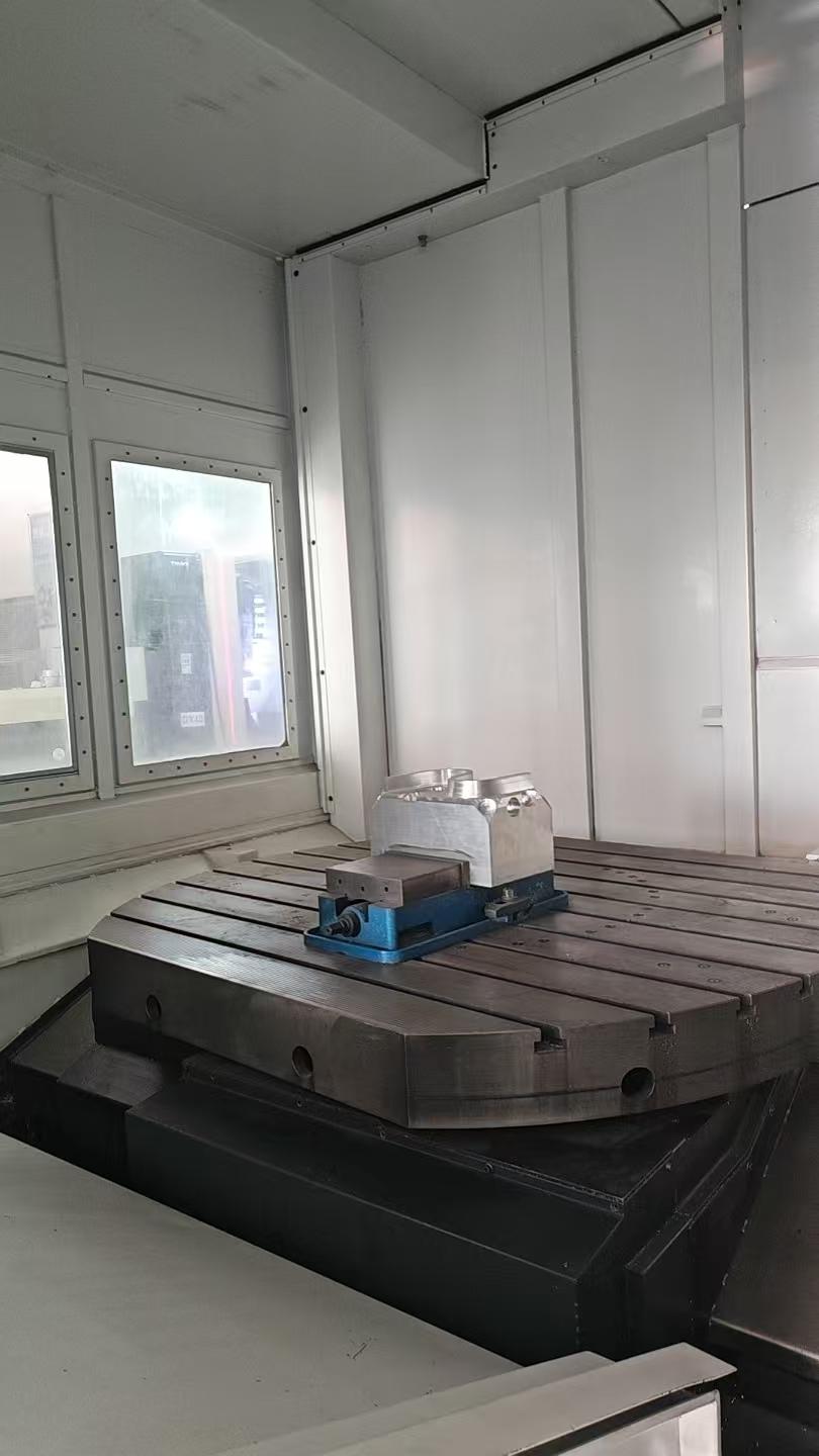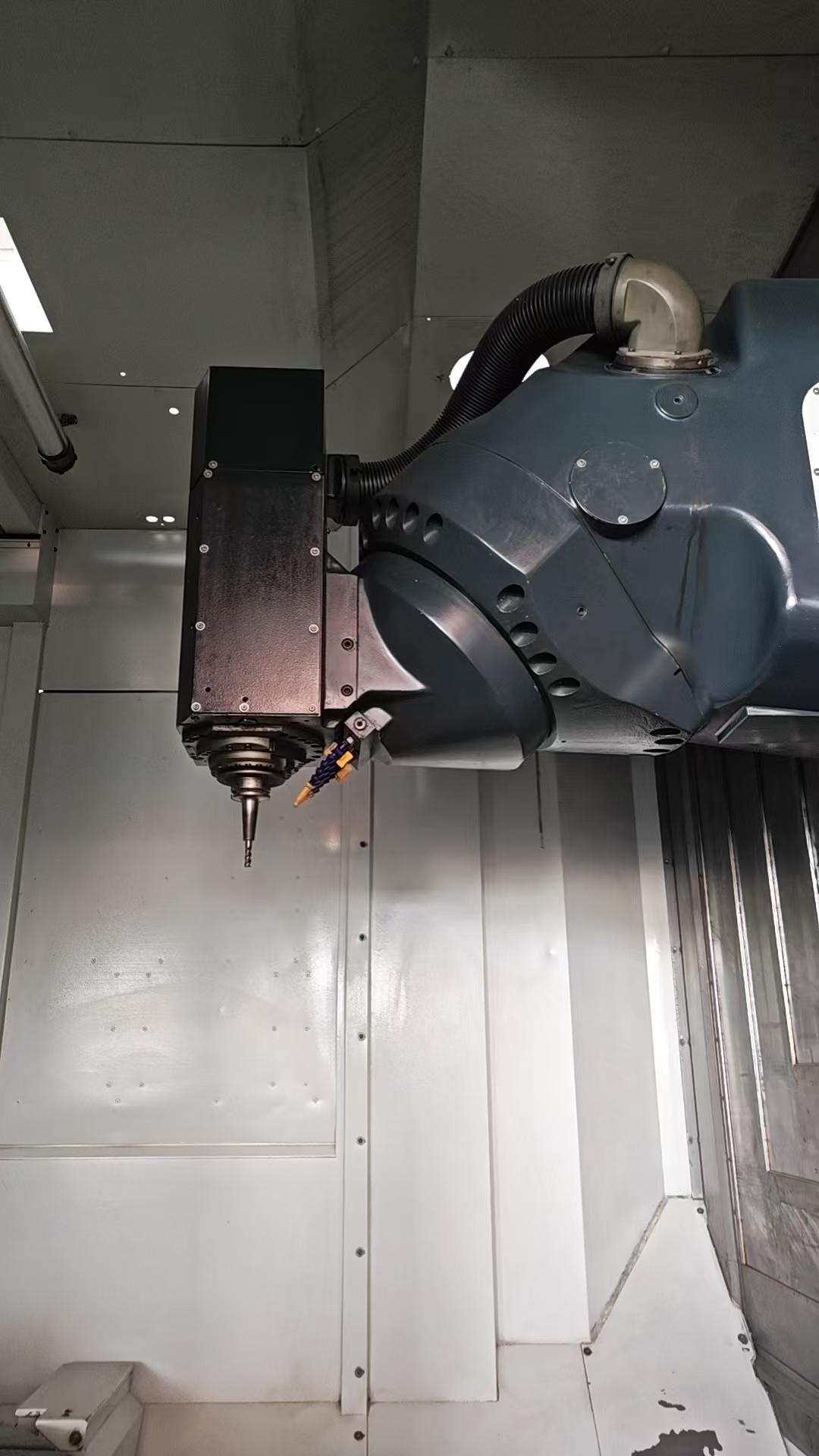 系统:海德汉530主轴运行时间:8000H三轴行程:1600x1400x1200主轴转速:18000rpm主电机功率:28kw刀柄型号:HSK63刀库:60主轴带中心出水工作台尺寸:1600 × 1400 mm机床外形尺寸:约 6000 × 5000 × 3500 mm机床重量:约 35,000 kg配置:可进行 5 轴联动加工,支持 RTCP 刀尖跟随功能3D 测量系统:Hexagon M&H IRP 25.10 接收单元海德汉 HR410 电子手轮德国 BLUM 激光对刀仪配置海德汉光栅尺刀库上第二个操作面板滚柱线性导轨过滤器水箱排削器油雾分离器