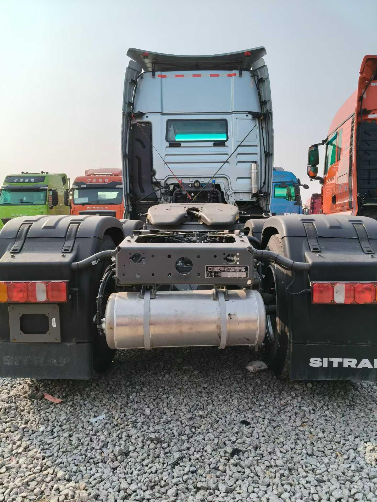 • 品牌:中国重汽·汕德卡(SITRAK)• 车型:C9H 超高顶 6×4 牵引车• 自重:约 8.3 吨• 外形尺寸:约 7170×2496×3980 mm• 轴距:3300 mm• 额定乘员:2–3 人 动力系统• 发动机:潍柴WP15T(680马力)◦ 排量: 14.6L◦ 峰值扭矩:2600–3200 N·m(900–1400 转爆发)◦ 排放标准:国六• 变速箱:重汽第七代 S-AMT16 手自一体变速箱(或 ZF12TX2621 TD)◦ 标配液力缓速器,长下坡更安全• 驱动桥:曼技术 MCY12BGS 驱动桥,主减速比约 2.71