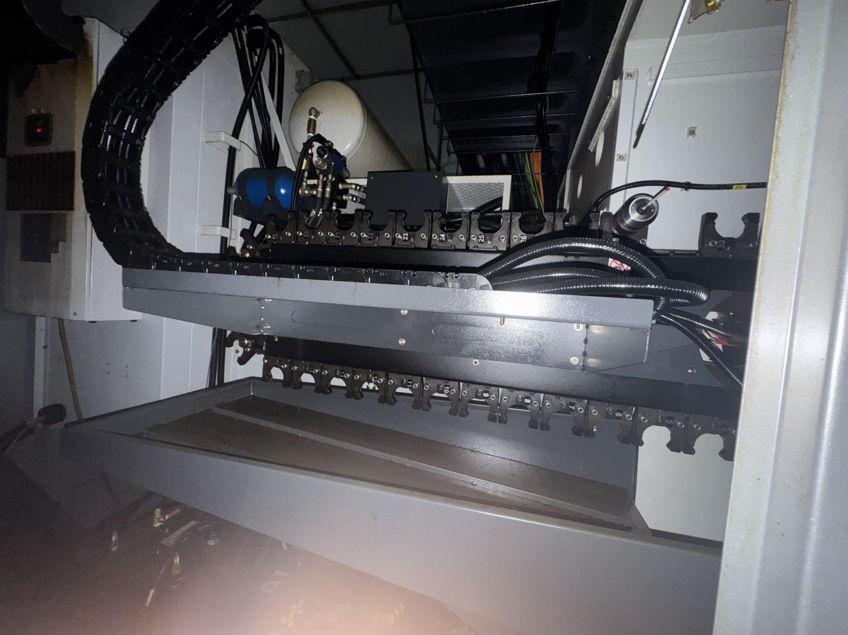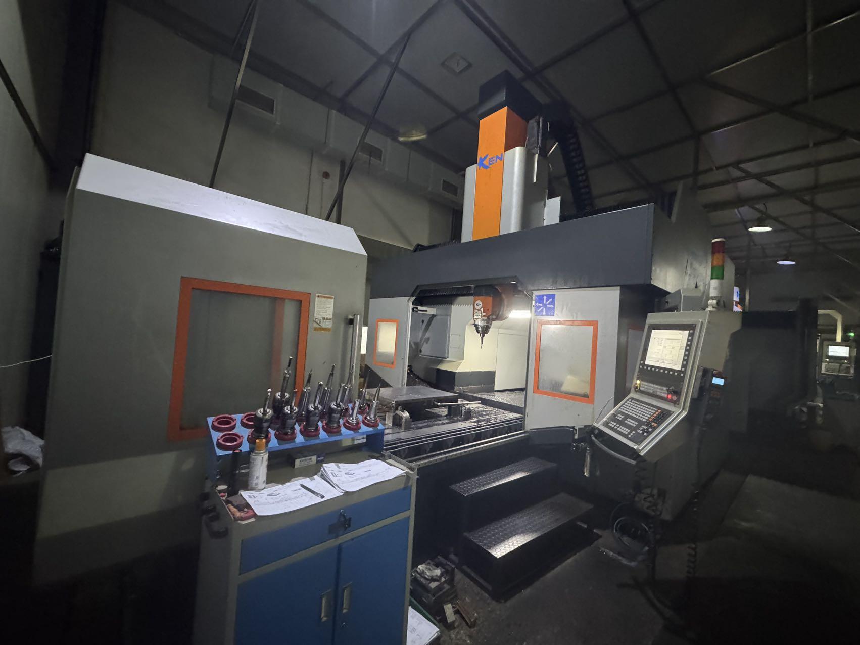 数控系统:海德汉 TNC-640(五轴联动)三轴行程:2200 × 2000 × 1000 mm两立柱间距离:1650 mm主轴鼻端至工作台距离:-150 ~ 850 mm结构形式:高刚性一体式龙门结构工作台尺寸:2200 × 1300 mmT 型槽规格:18 mm(间距 180 mm)最大承重:4000 kg主轴锥度:HSK-A63主轴转速:24000 rpm主轴功率:21 kW(S1)五轴头:欧洲进口 TCH-L13(EVO),力矩电机直驱A 轴行程:±110°C 轴行程:360°连续刀库容量:36 刀柄形式:HSK-A63最大刀具重量:8 kg换刀时间(刀对刀):约 6 秒位置反馈:X / Y / Z 全闭环海德汉光栅尺导轨形式:6 支滚柱线性滑轨(X / Y / Z 各 2 支)排屑方式:螺旋 + 刮板排屑机机床尺寸(长 × 宽 × 高):约 8500 × 4500 × 4200 mm整机重量:约 52 吨