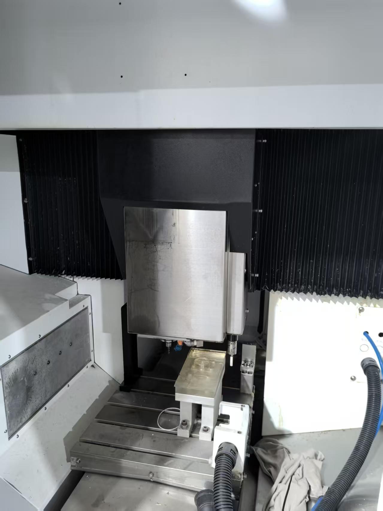 三轴行程:400x400x150mm 工作台尺寸:400×400mm工作台最大承重:100kg 主轴鼻部到工作台面最小距离:110mm主轴转速:60000rpm定位精度:±0.005/300mm 机床总重量:2500kg外形尺寸:1800×1800×2100mm