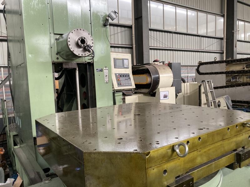 数控系统:发那科 0i-MFX轴行程:1800 mmY轴行程:1500 mmZ轴行程:1200 mm工作台台面至主轴中心距离:0–1500 mm工作台中心至主轴端面距离:300–1500 mm工作台尺寸:1500 × 1500 mm工作台承重:4000 kg主轴锥度:ISO 50 (7/24)主轴直径:130 mm主轴转速:8–3150 rpm分度精度:0.001°机器重量:35 吨刀库容量:90(BT-50)