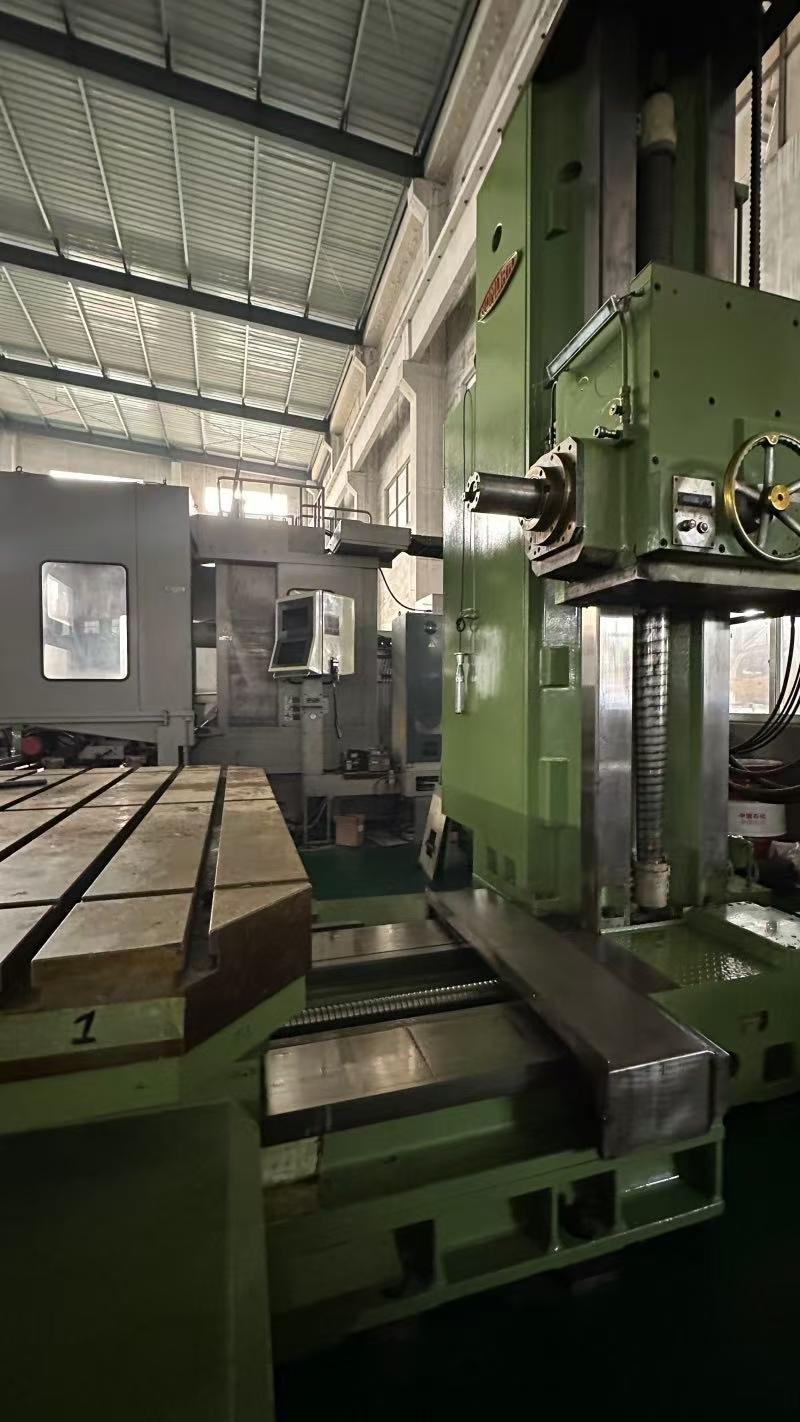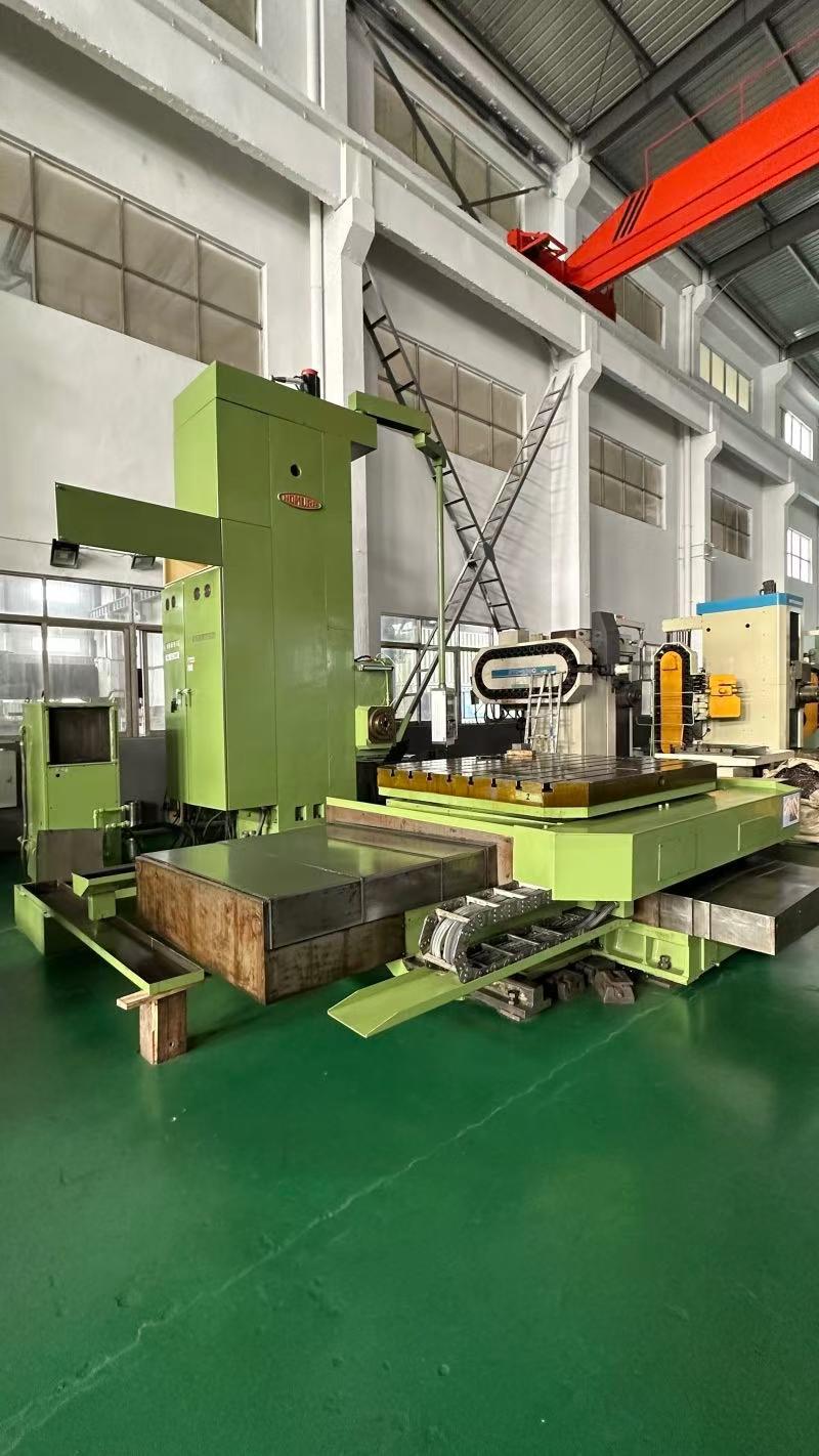 数控系统:发那科镗杠直径:130 mm铣轴直径:215 mm主轴行程:900 mm三轴行程(X/Y/Z):2400 × 1500 × 2100 mm回转工作台尺寸:1800 × 2000 mm工作台承重:10 吨主轴转速:10–1500 rpm机床外形尺寸(长 × 宽 × 高):6370 × 5650 × 4995 mm机床重量:约 25.7 吨