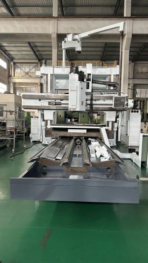 三轴行程:4000x2500x1000mm工作台尺寸:4000x2500mm主轴锥度:BT50主轴转速:6000 rpm主轴功率:18.5/22 kW刀库容量:40T数控系统:发那科 18i-MB机床重量:32 吨