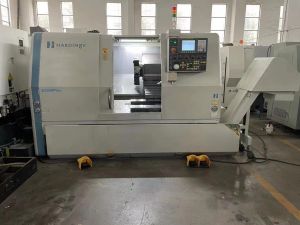 最大转速:6000 rpm主轴通孔直径:φ65 mm卡盘规格:8寸最大夹持直径:φ320 mm 最大加工长度:550 mm X轴行程:260 mm Z轴行程:560 mm 数控系统:发那科 0i-TD 机床重量:4500 kg外形尺寸:3800x1800x1900mm