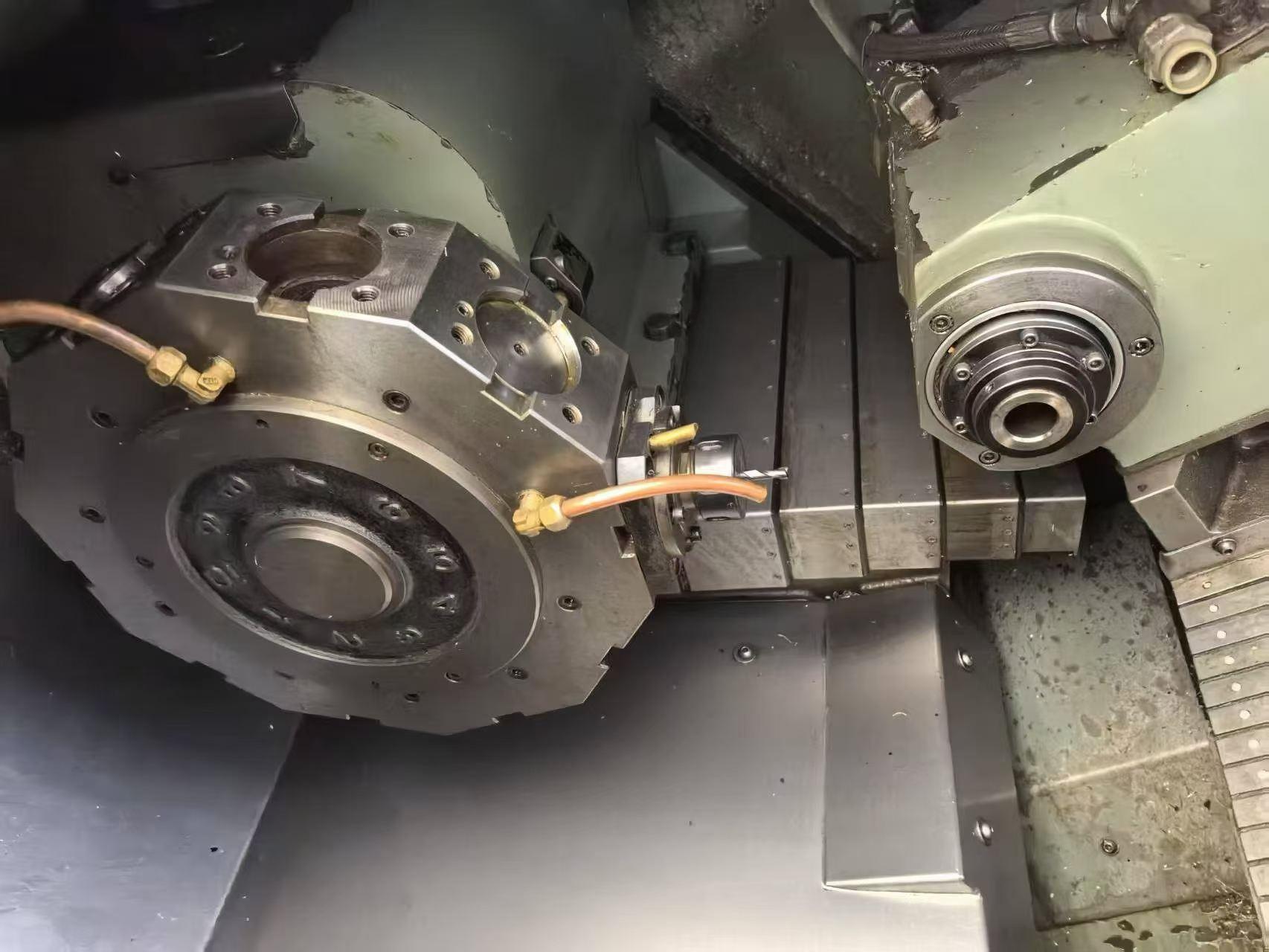 数控系统:发那科18-T最大回转直径:φ200 mm最大加工长度:750 mm主轴通孔直径:φ52 mm主轴转速:4500 rpm主轴电机功率:7.5/11 kWX轴行程:φ200 mmZ轴行程:750 mmY轴行程:±50 mm刀塔形式:12工位动力刀塔卡盘尺寸:8寸整机重量:6500 kg外形尺寸:3500x1800x1900 mm