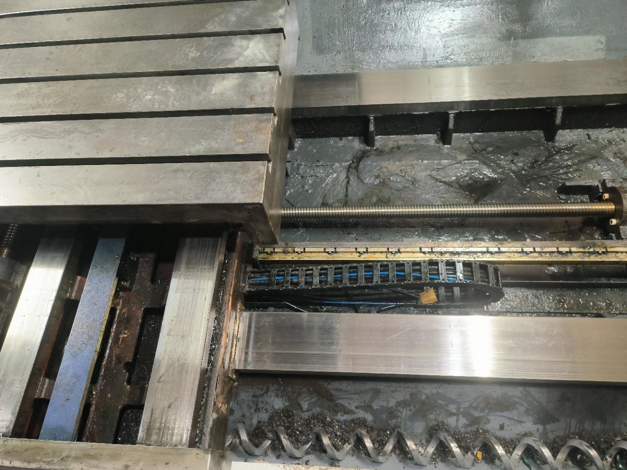数控系统:发那科 MXP-200i三轴行程(X/Y/Z):1500 × 850 × 800 mm工作台尺寸:1700 × 860 mm导轨形式:三轴硬轨主轴锥度:BT50主轴转速:6000 rpm刀库容量:24,圆盘式主轴端面至工作台距离:900 mm配置:龙头式排屑机光栅尺中心出水