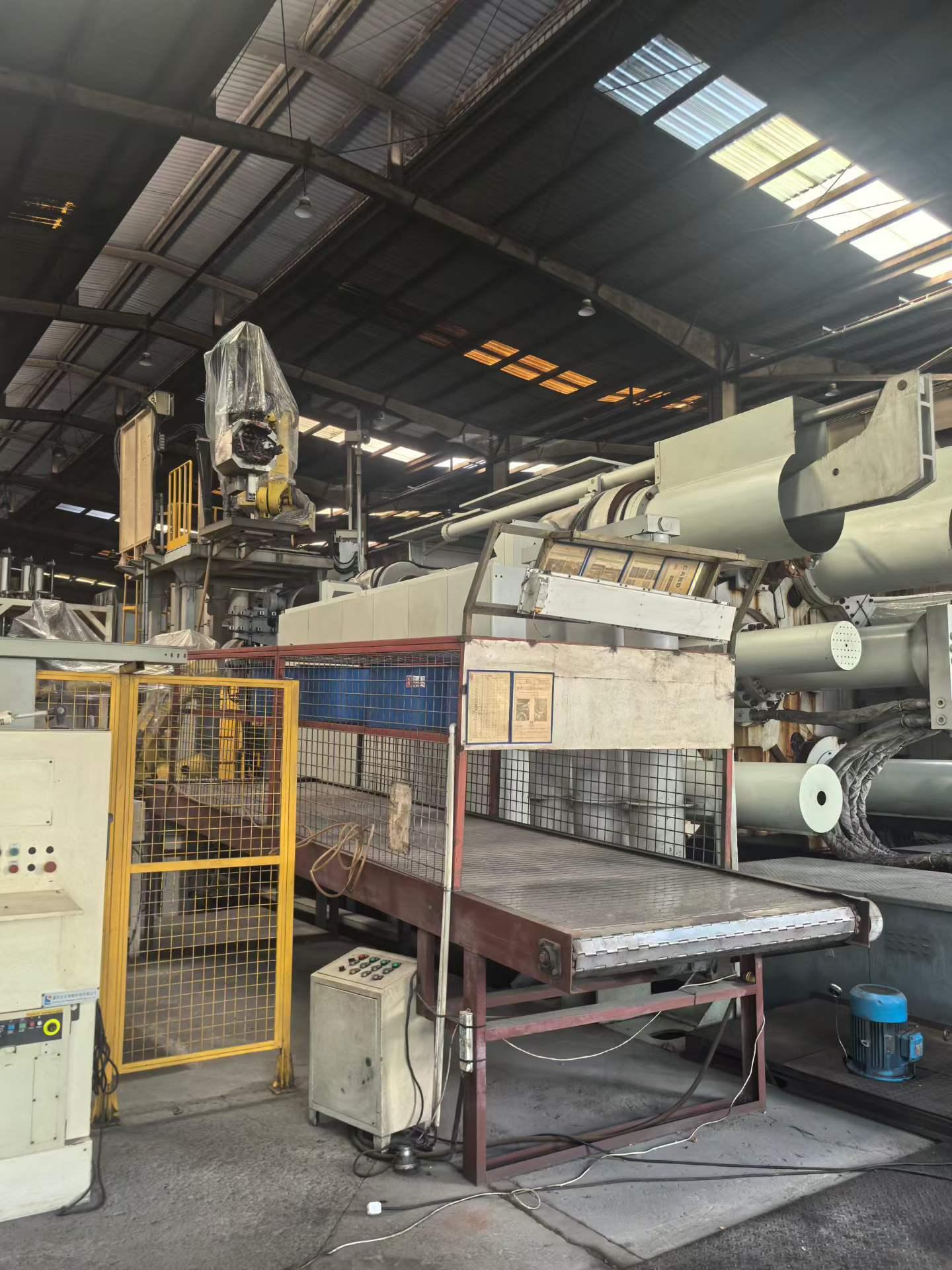 最大锁模力:35,000 kN注射力:约390–420 kN柱塞直径:Ø130 mm柱塞行程:950 mm压铸重量(铝):6.5–8.5 kg投影面积(400 bar):8,750–9,000 cm²模板尺寸(高 × 宽):3100 × 3100 mm拉杆间距(高 × 宽):1950 × 1950 mm模具高度(最小/最大):900/1350 mm开模行程:1200 mm