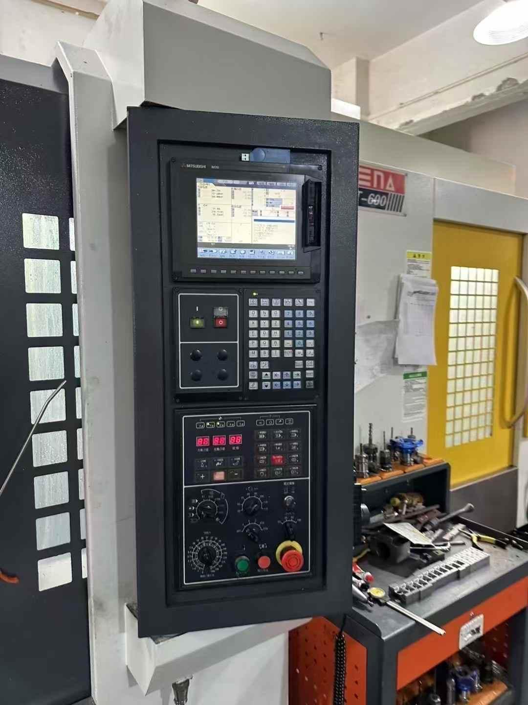 数控系统:三菱 M70三轴行程(X/Y/Z):600 × 400 × 450 mm刀库容量:20 把主轴转速:10000 rpm工作台尺寸:700 × 420 mm主电机功率:14.5 kW整机耗电功率:9.7 kW外形尺寸:1900 × 2300 × 2300 mm