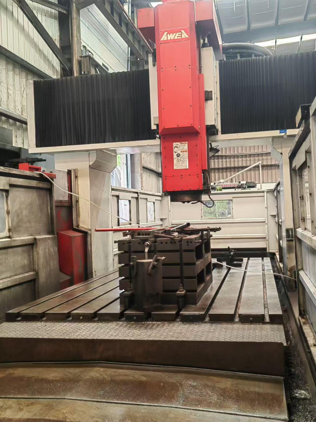 三轴行程:4000 × 2100 × 760 mmX / Y / Z轴快移速度:15 × 15 × 15 m/min工作台尺寸:4020 × 2010 mm工作台最大承重:12000 kg主轴最高转速:6000 rpm主轴锥度:BT50龙门宽度:2700 mm龙门高度:1400 mm刀库容量:32机器重量:37500 kg