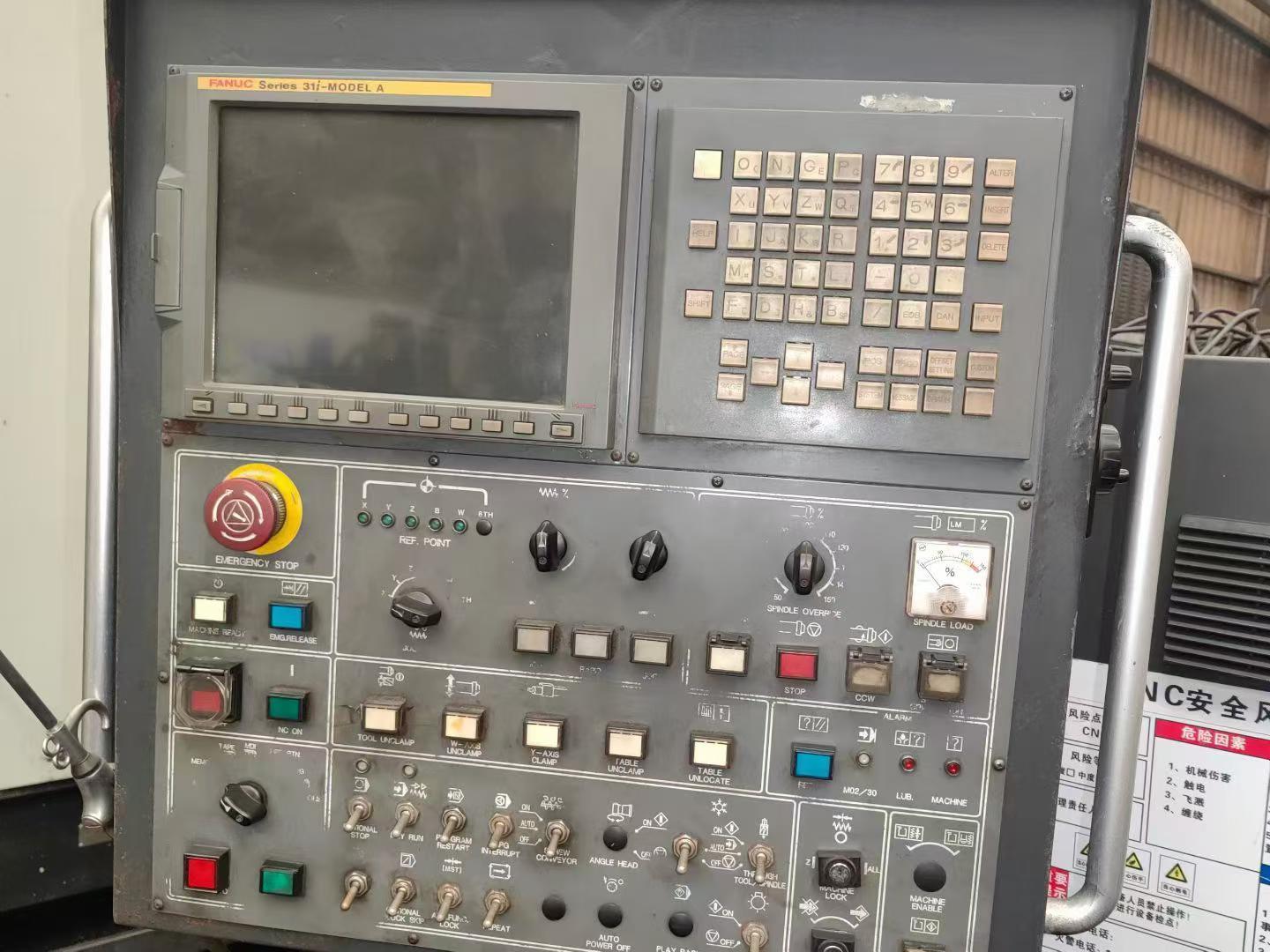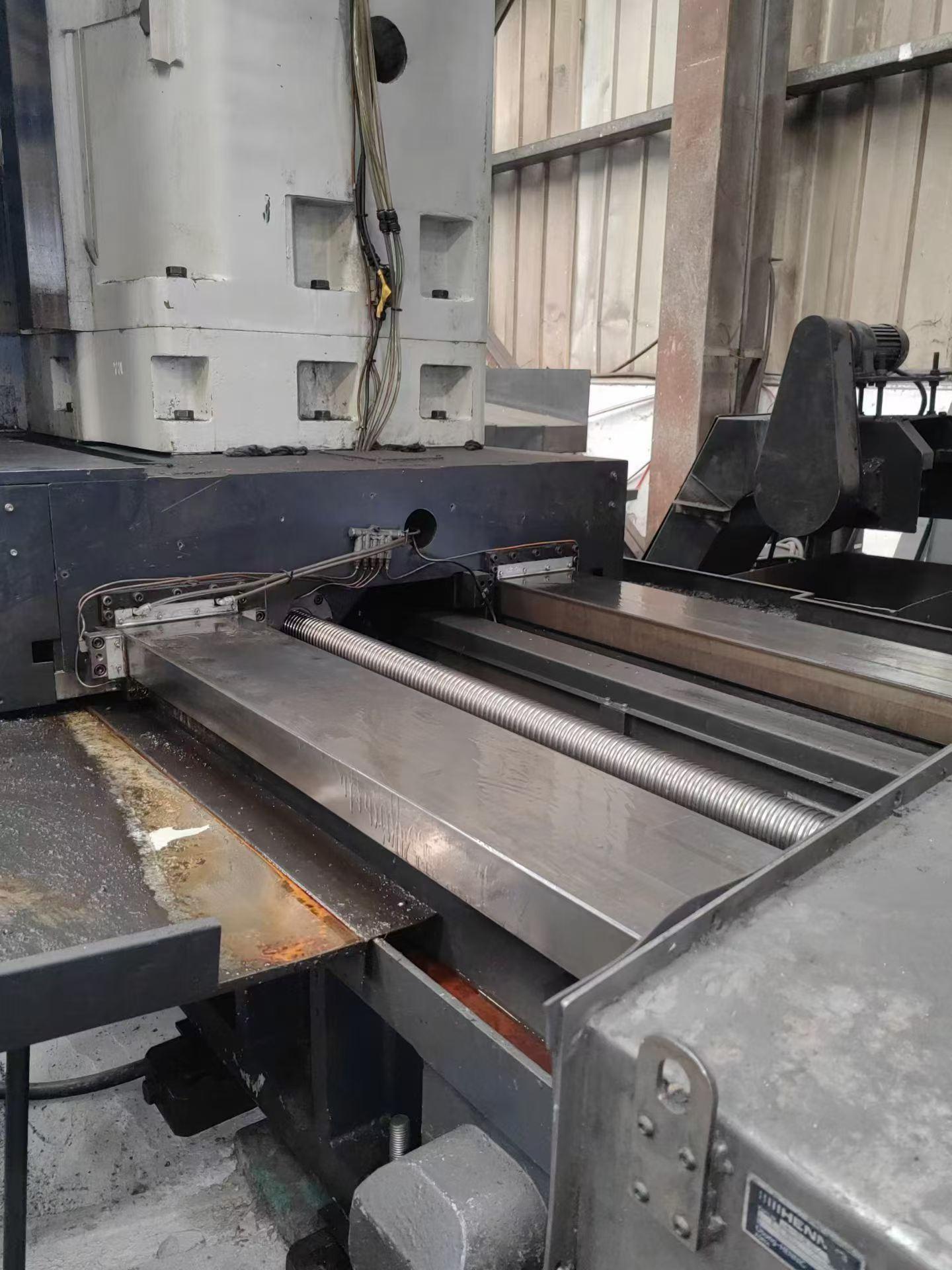 数控系统:发那科 31iX轴行程:3000 mmY轴行程:2000 mmZ轴行程:1600 mmW轴行程(镗轴伸出):700 mm工作台尺寸:1800 × 1600 mm镗杠直径:130 mm主轴锥度:BT50最高转速:3000 rpm最大扭矩:3356.6 N·m最大承重:15 吨分度精度:0.001°刀库容量:40 ,ATC配置:三轴配备光栅尺