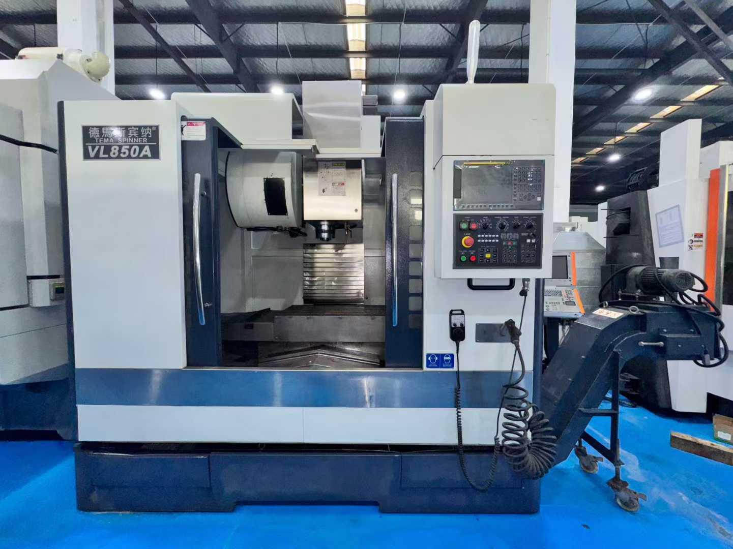 主轴转速:12000rpm主轴锥孔:BT40三轴线轨刀库:24工作台尺寸:1000×550mm外形尺寸:2600×2200×2800mm三轴行程:800x560x580mm系统:发那科MF Plus带自动排屑机