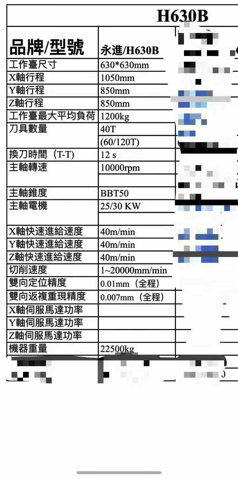 永进 - H630B - 卧式加工中心
