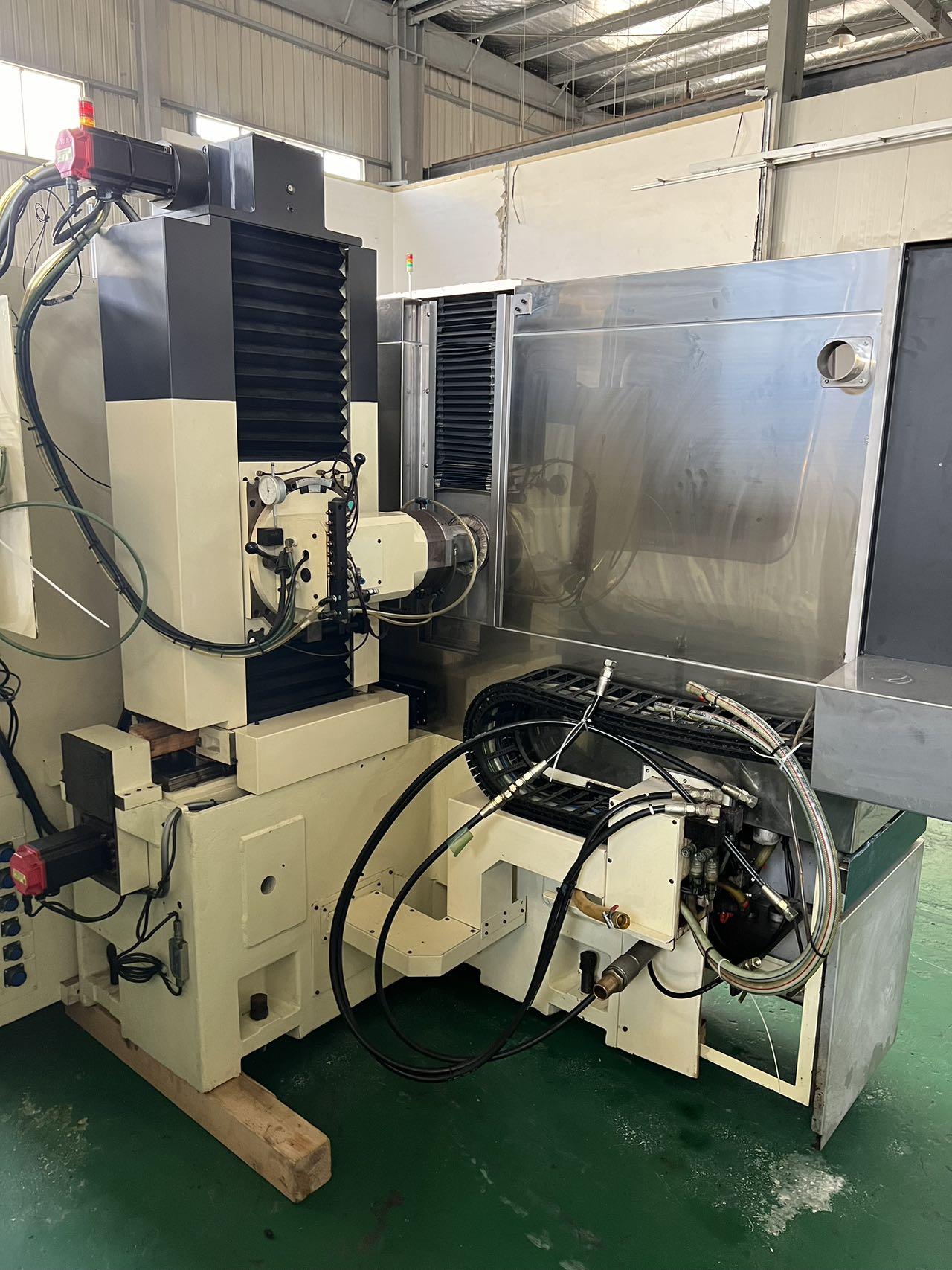 数控系统:FANUC Oi-MC工作台作业面积(左右*前后):450*150mm静压主轴,静压导轨导轨最大行程:620mm最大线速:45m/min最小设定单位:0.0001mm最大装载重量:100kg砂轮外径× 宽度×内径:Φ70~180×15×Φ31.75mm砂轮轴转速:1500~15000rpm砂轮轴旋转范围:±12º砂轮轴上下移动量:415mm砂轮轴进给速度:1000mm/min最小设定单位:0.0001mm砂轮轴电机:2.5kW前后轴电机:1kW上下轴电机:1kW导轨电机:5kW导轨静压泵电机:2kW 导轨静压油加热电机:2.5kW