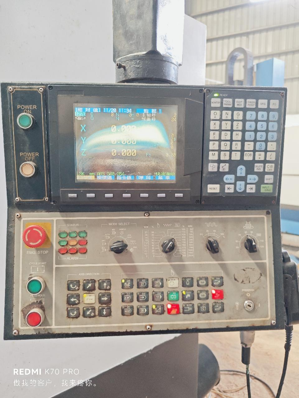 数控系统:发那科oi-MC主轴电机功率:15kw刀库:24主轴锥度:BT50主轴转速:8000rpm三轴行程:1200*600*600mm工作台尺寸:1300*600mm主轴鼻端至工作台距离:125-725mm外形尺寸:3400*2200*2320mm