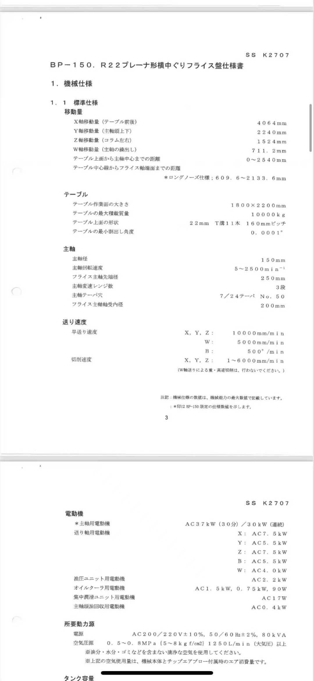 工作台尺寸:1800*2200mm三轴行程:4000*2000*1500mmW轴行程:700mm主轴直径:150mm主轴转速:5-2500rpm工作台到主轴中心的距离:2540mm刀库容量:60中心出水四轴光栅尺
