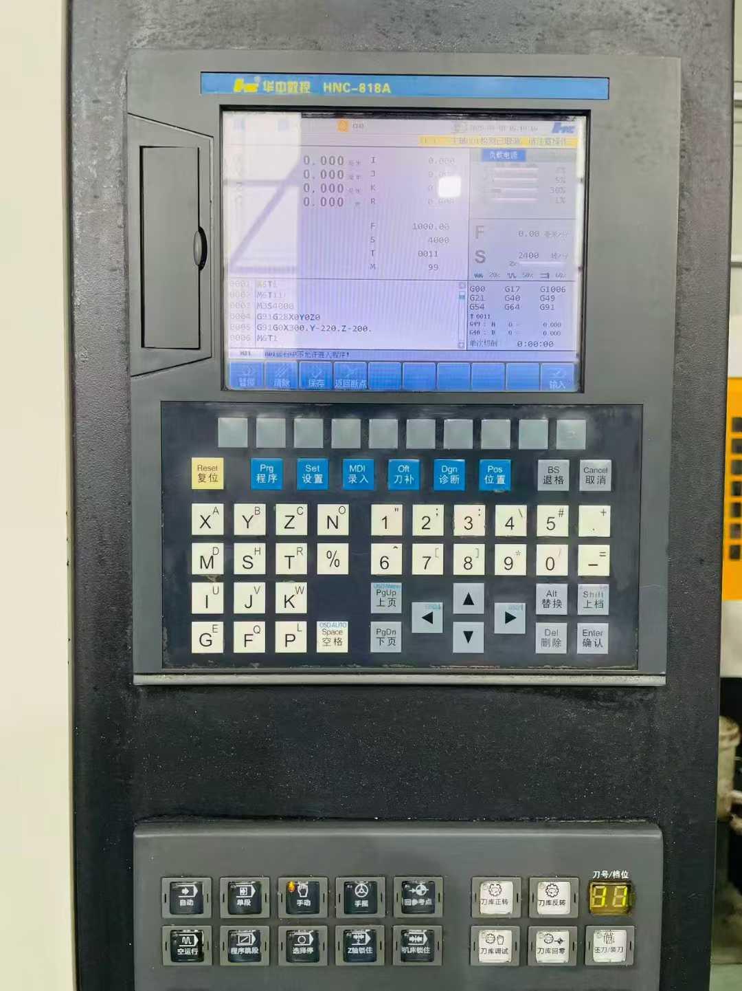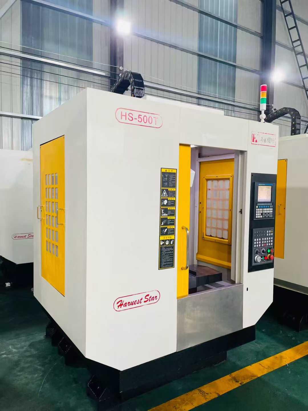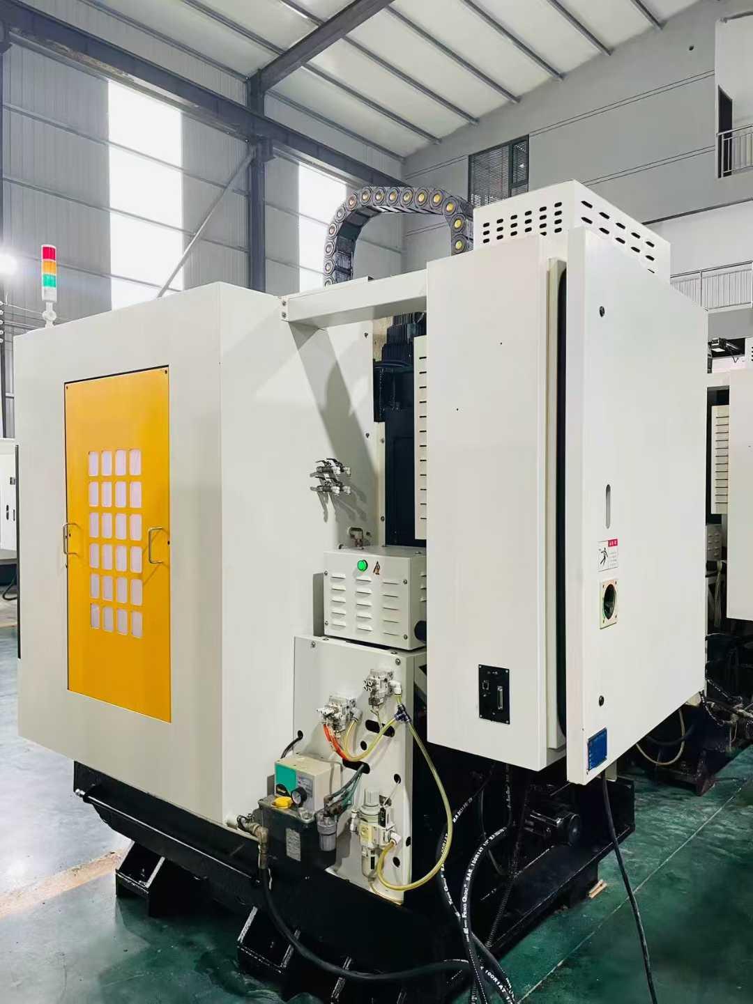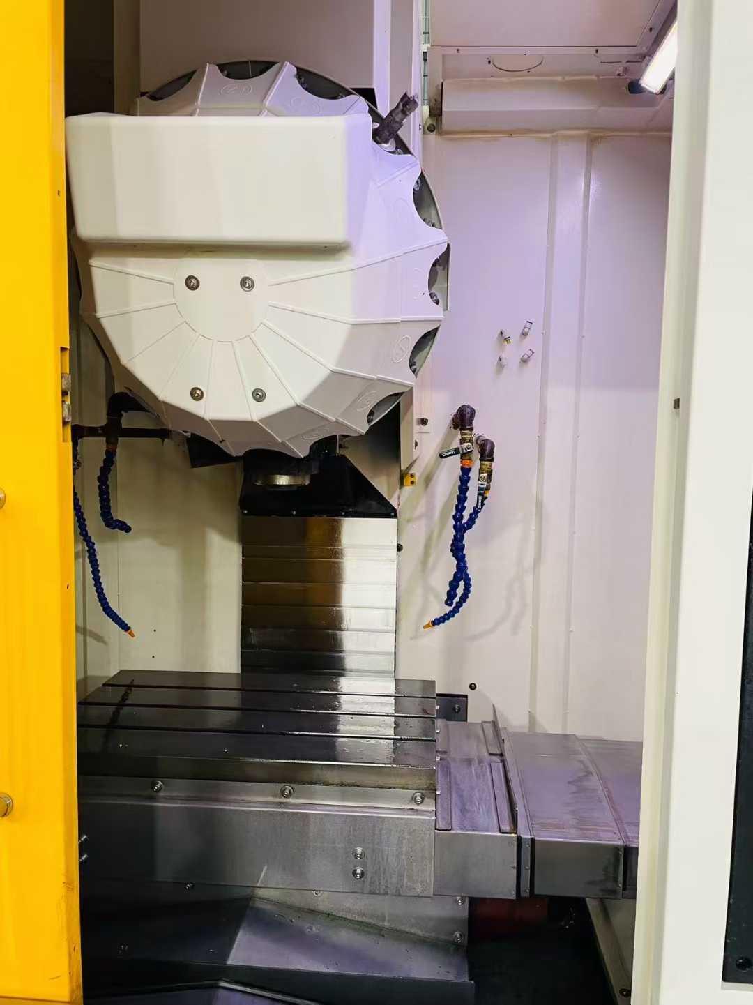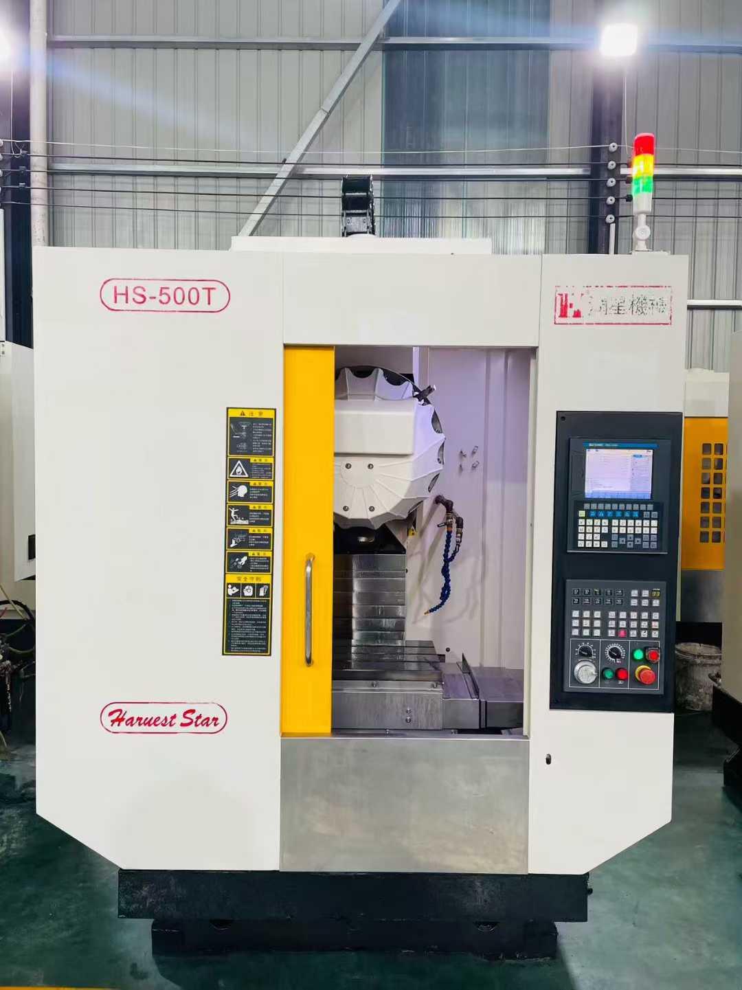 工作台尺寸:650*400mm工作台承重:300kg三轴行程:500*400*330mm主轴转速:20000rpm主轴鼻端至工作台距离:160-460mm主轴中心至立柱导轨面距离:480mm主电机功率:7.5-5.5kw外形尺寸:1785*2320*2540mm刀库:21