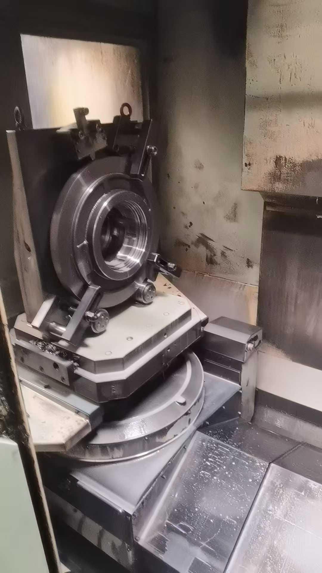 数控系统:发那科 16iMB,阿发驱动器三轴行程:800*800*700mm最大工件直径:800mm最大工件高度:900mm主轴转速:60-10000rpm刀柄:BT50快速移动速度:40m/min切削进给速度:1-32mm/minB轴旋转角度:360°B轴度精度:0.001°B轴快速移动:3600rpm主轴功率:25/30kW刀库容量:40换刀时间:2.6s带光栅尺全闭环工作台面到主轴轴心线距离:100-900mm工作台中心到主轴鼻端距离:180-880mm
