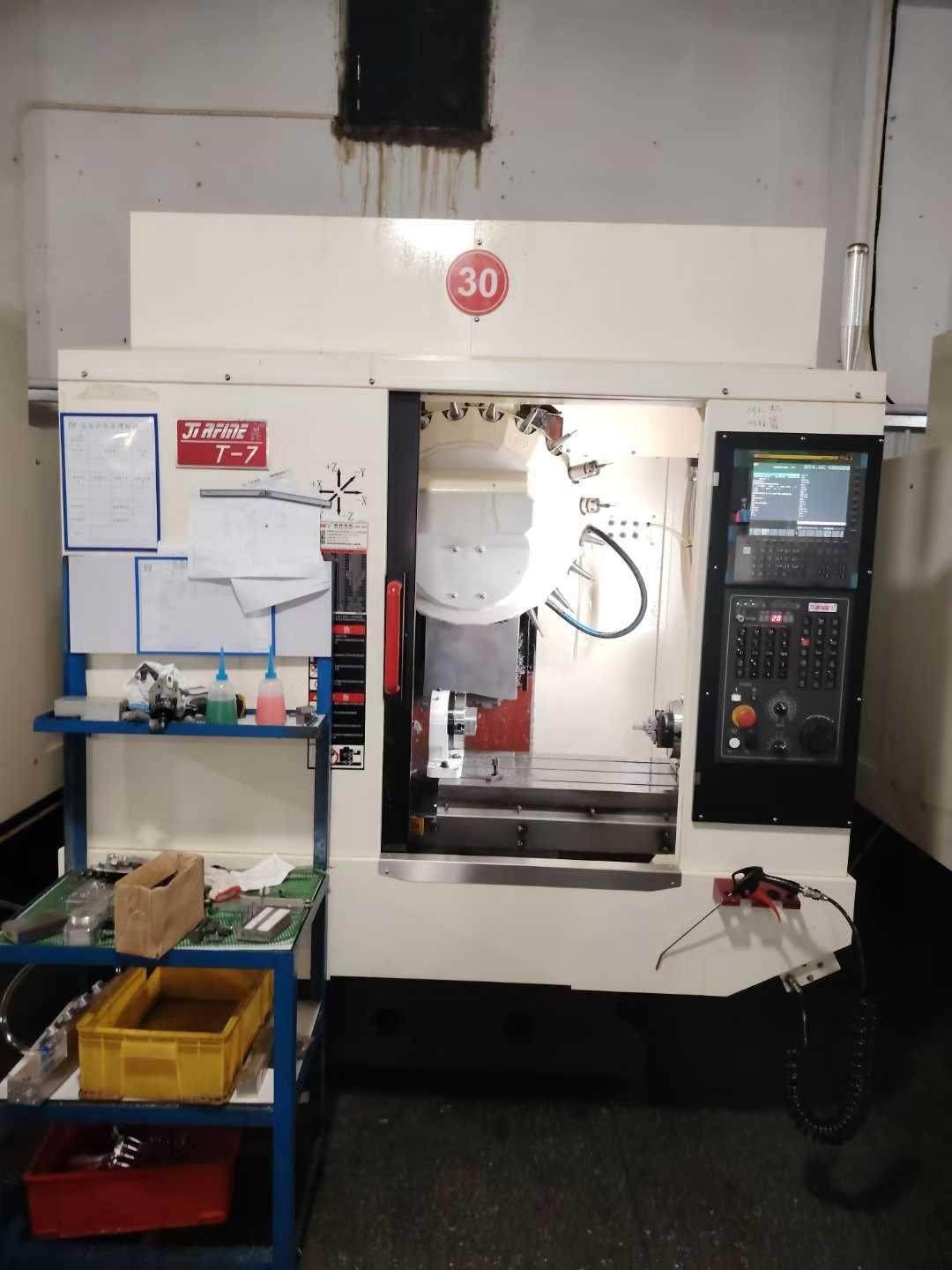 数控系统:发那科MF-Plus三轴行程:700*400*300mm主轴转速:24000rpm主轴锥度:BT30主轴鼻端至工作台距离:120-420mm主轴中心至立柱轨面距离:460mm工作台尺寸:850*400mm刀库:21