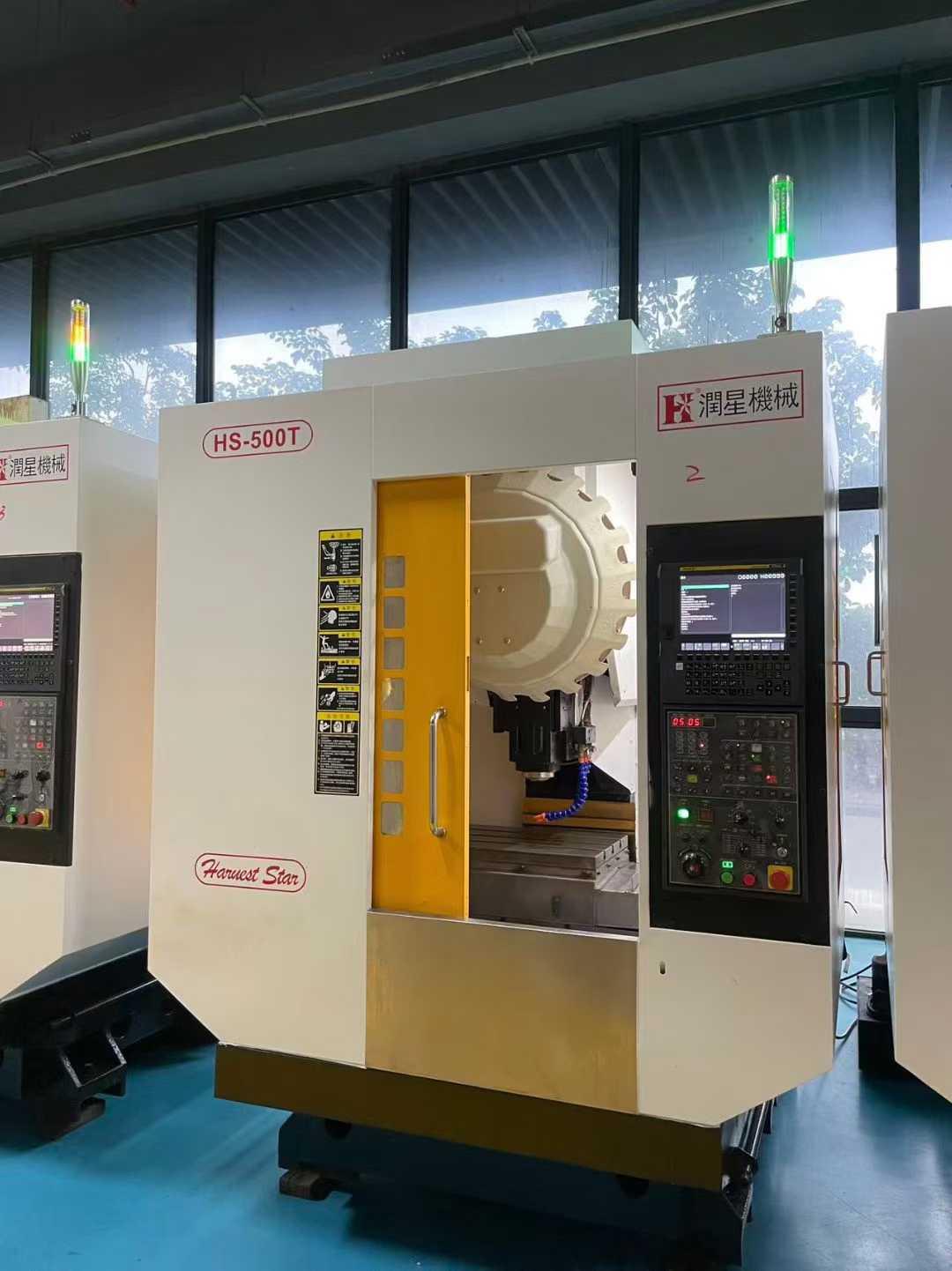 工作台尺寸:650*400mm工作台承重:300kg三轴行程:500*400*330mm主轴转速:20000rpm主轴鼻端至工作台距离:160-460mm主轴中心至立柱导轨面距离:480mm主电机功率:7.5-5.5kw外形尺寸:1785*2320*2540mm刀库:21
