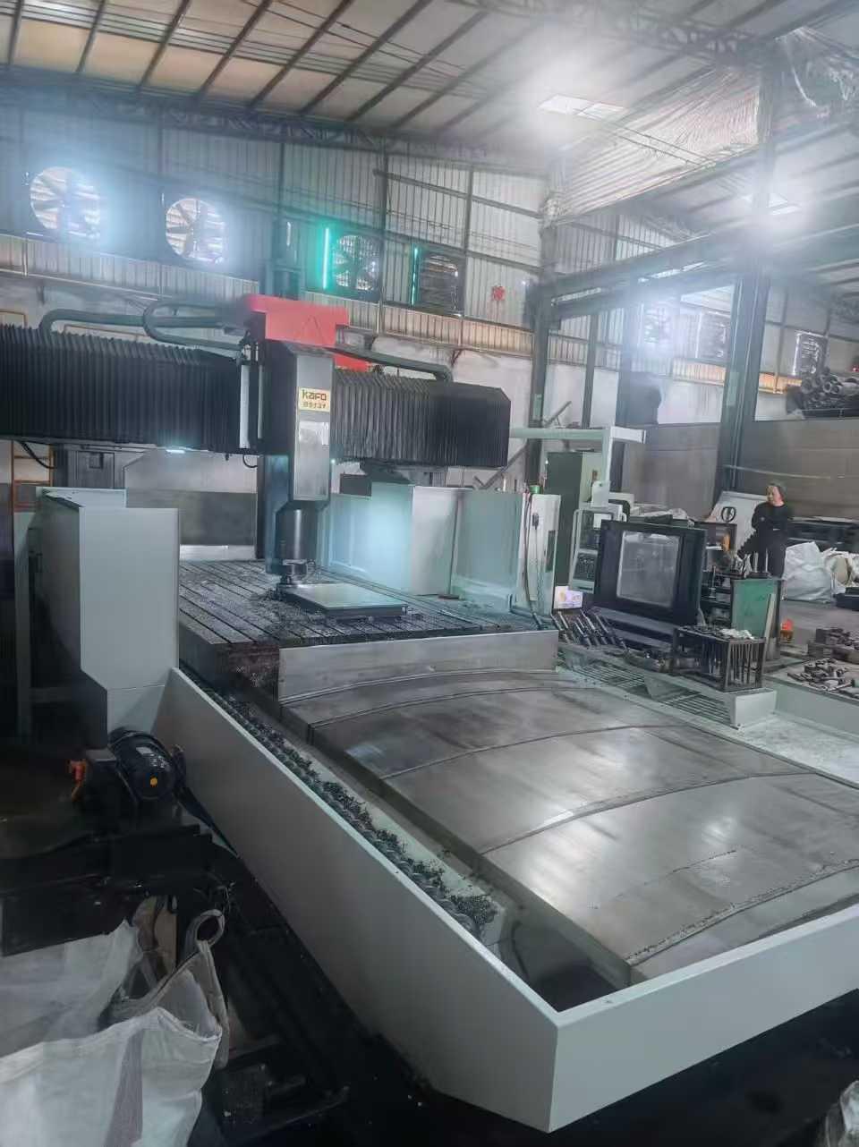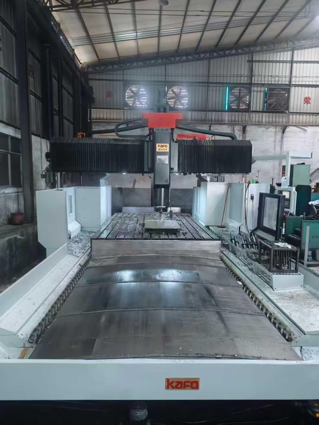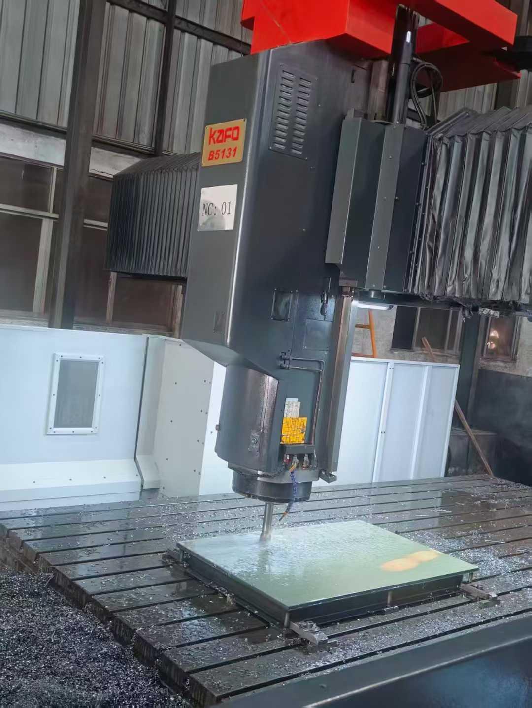 数控系统:发那科MD,a法驱动两线一硬导轨工作台尺寸:5000*2900mm三轴行程:5100*3100*1100mm龙门宽:3240mm龙门高:1500mm主轴:BT50主轴转速:10000转主轴带油冷机