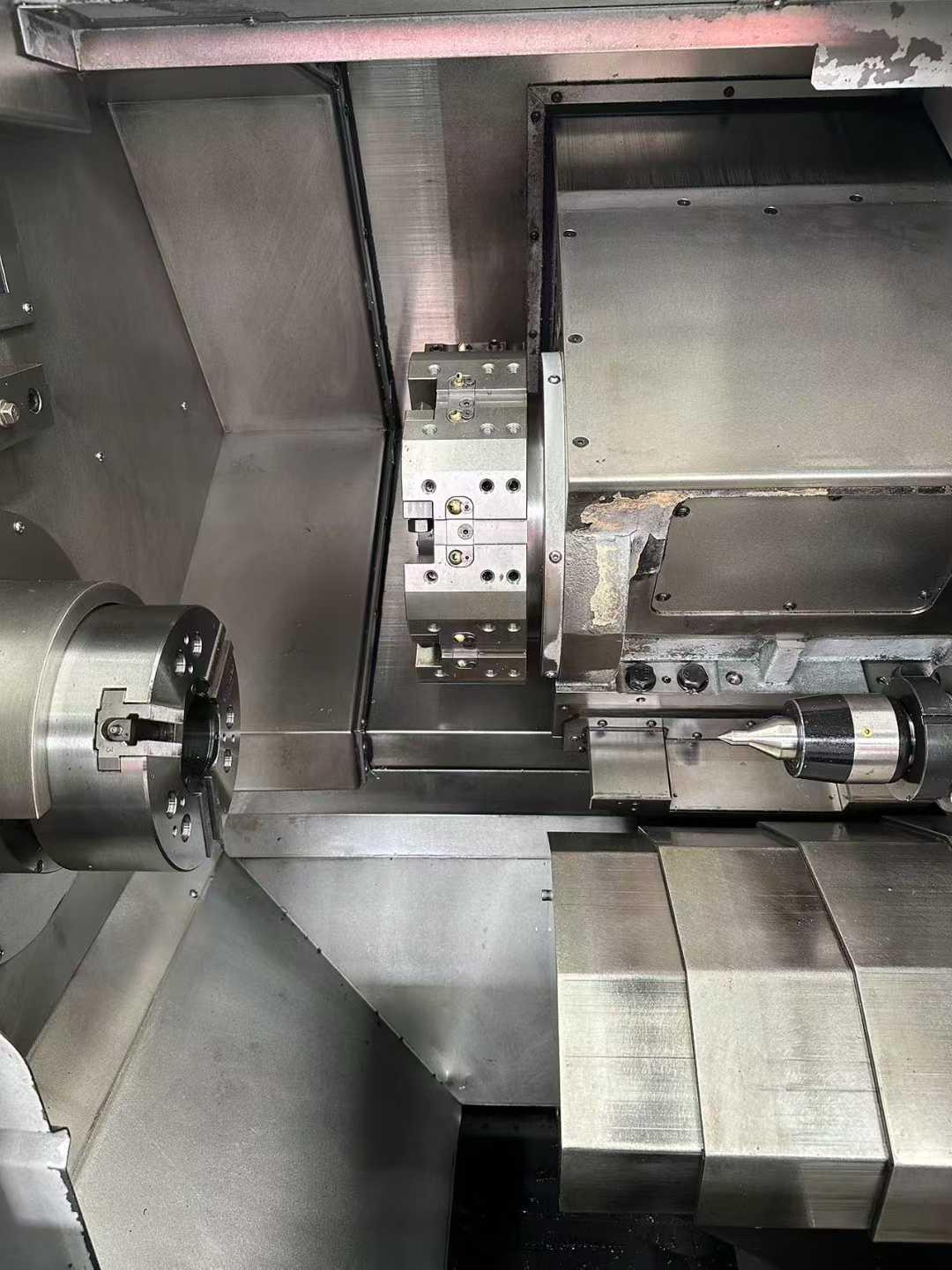 数控系统:发那科TF PlusX轴行程:160mm Z轴行程:560mm加工直径:280mm加工长度:500mm棒材直径:65mm主轴转速:4000rpmX轴快移速度:24m/minZ轴快移速度:27m/min主轴电机:11/18.5KW外形尺寸:1970x1778x1600mm机器重量:3830kg