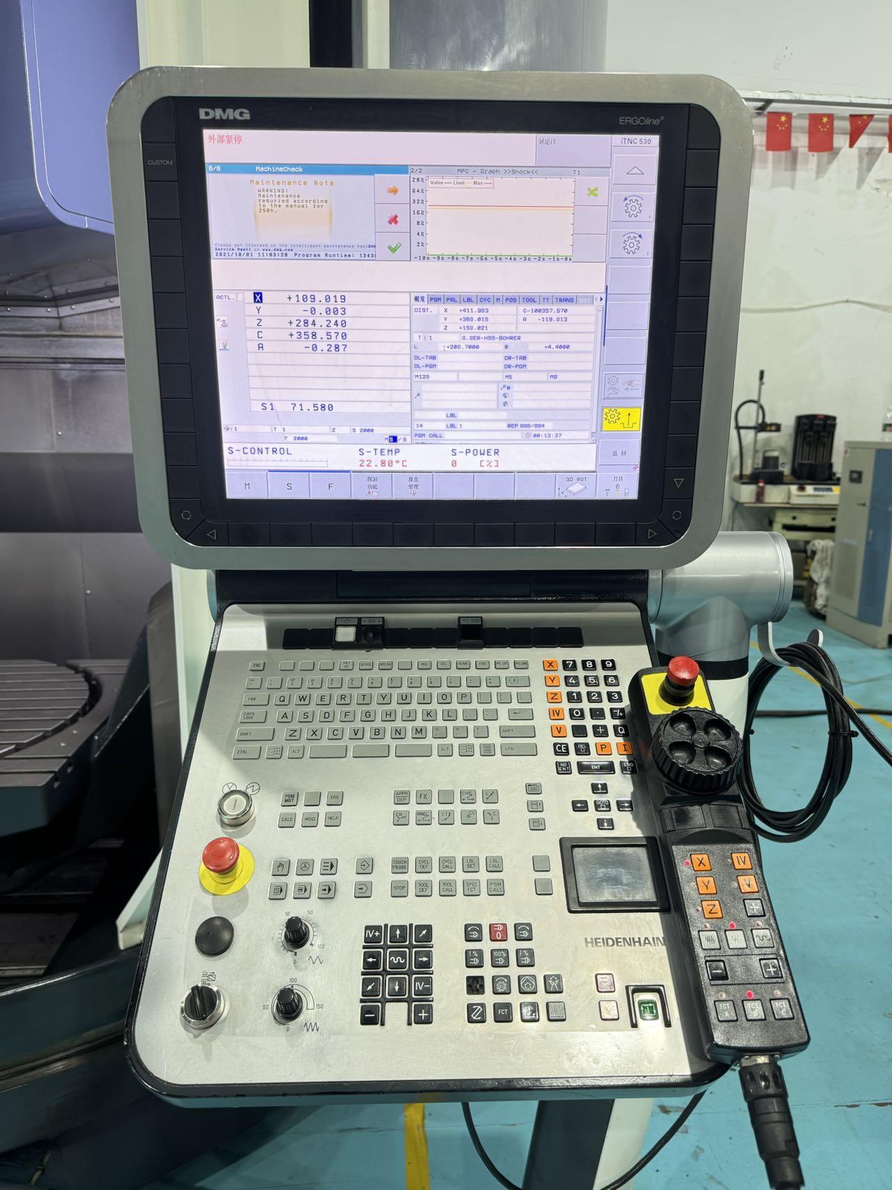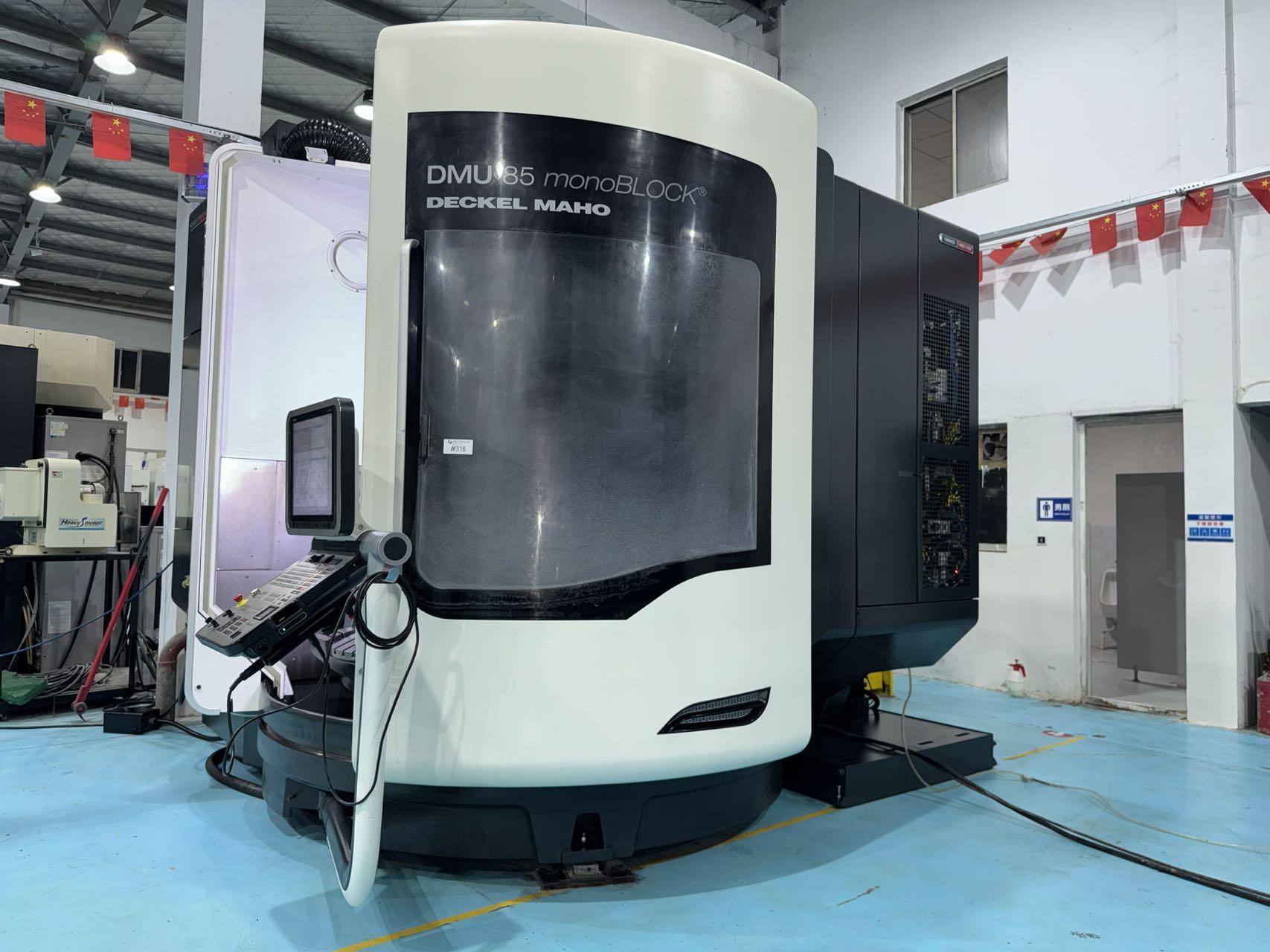 数控系统:海德汉三轴行程:935×850×650 mmA轴:-120°~+120°A轴分度精度:0.001C轴:360°(连续旋转)C轴分度精度:0.001最大加工直径:1040 mm最大加工高度:590 mm回转摆动工作台:工作台尺寸:850×750 mm工作台载重:1500 KG刚性工作台:工作台尺寸:1000×750 mm工作台载重:2000 KG刀库容量:30,ATC主轴:HSKA-100主轴转速:10000 转配置:配40公斤中心出水