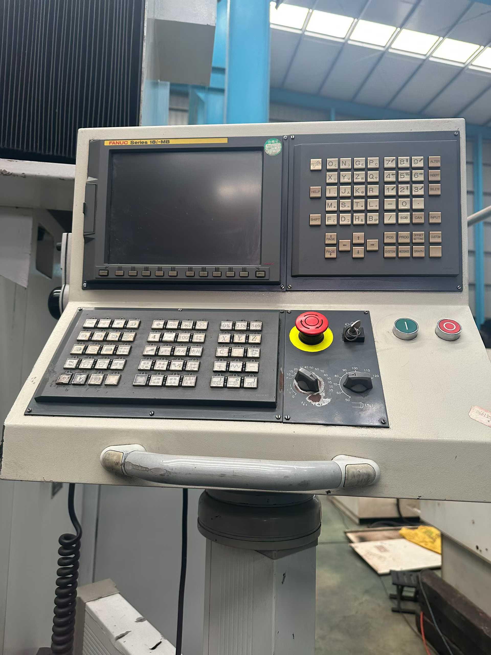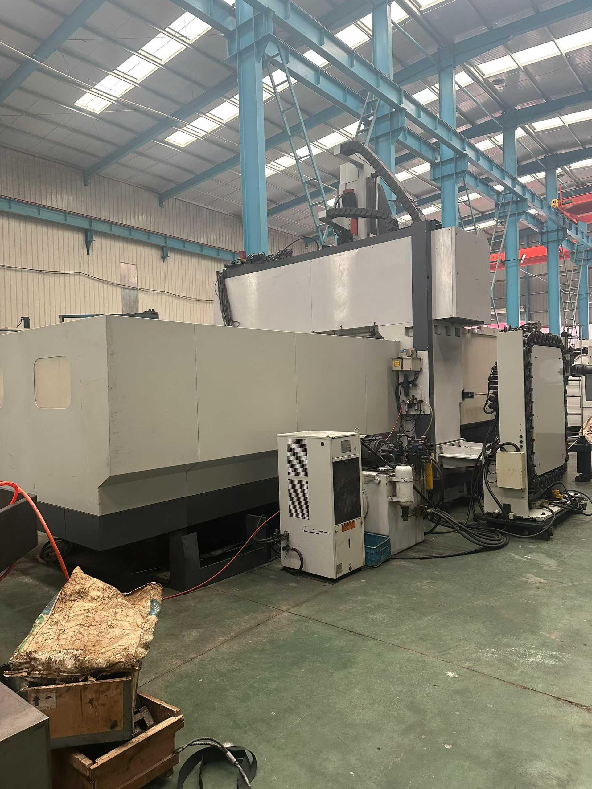 数控系统:发那科 18i三轴行程:4200 * 2700 * 1000mm工作台尺寸:2000 * 4000 mm龙门宽度:2500 mm龙门高度:1300 mm导轨:两线一硬全闭环光栅尺主轴:BT50,齿轮头刀库容量:40把,立卧式刀库带意大利全自动铣头