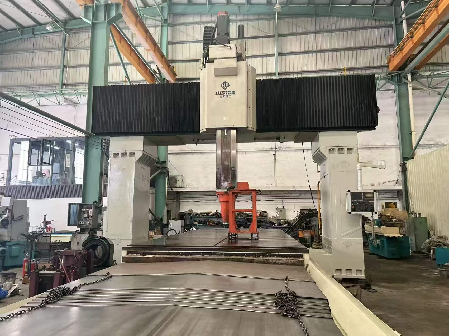 数控系统:发那科31i工作台尺寸:2500mm × 6000mm三轴行程:6200mm × 4200mm × 1250mm三轴快移速度:10m/min (X, Y, Z轴均为10m/min)主轴锥度:BT50导轨类型:两线一硬主轴功率:45 kW(标准)/ 55 kW(可选)龙门宽度:5200mm龙门高度:2500mm工作台承重:20吨
