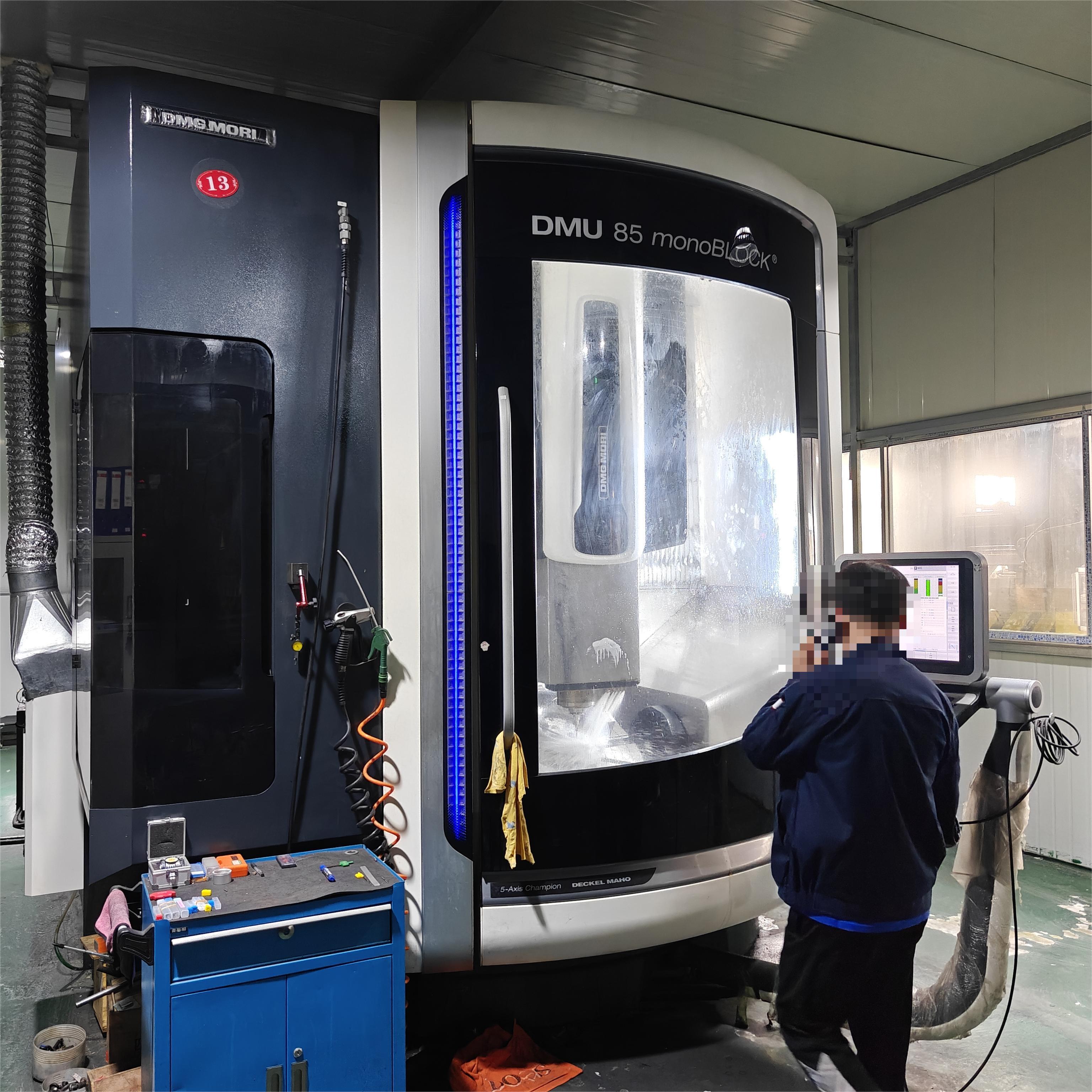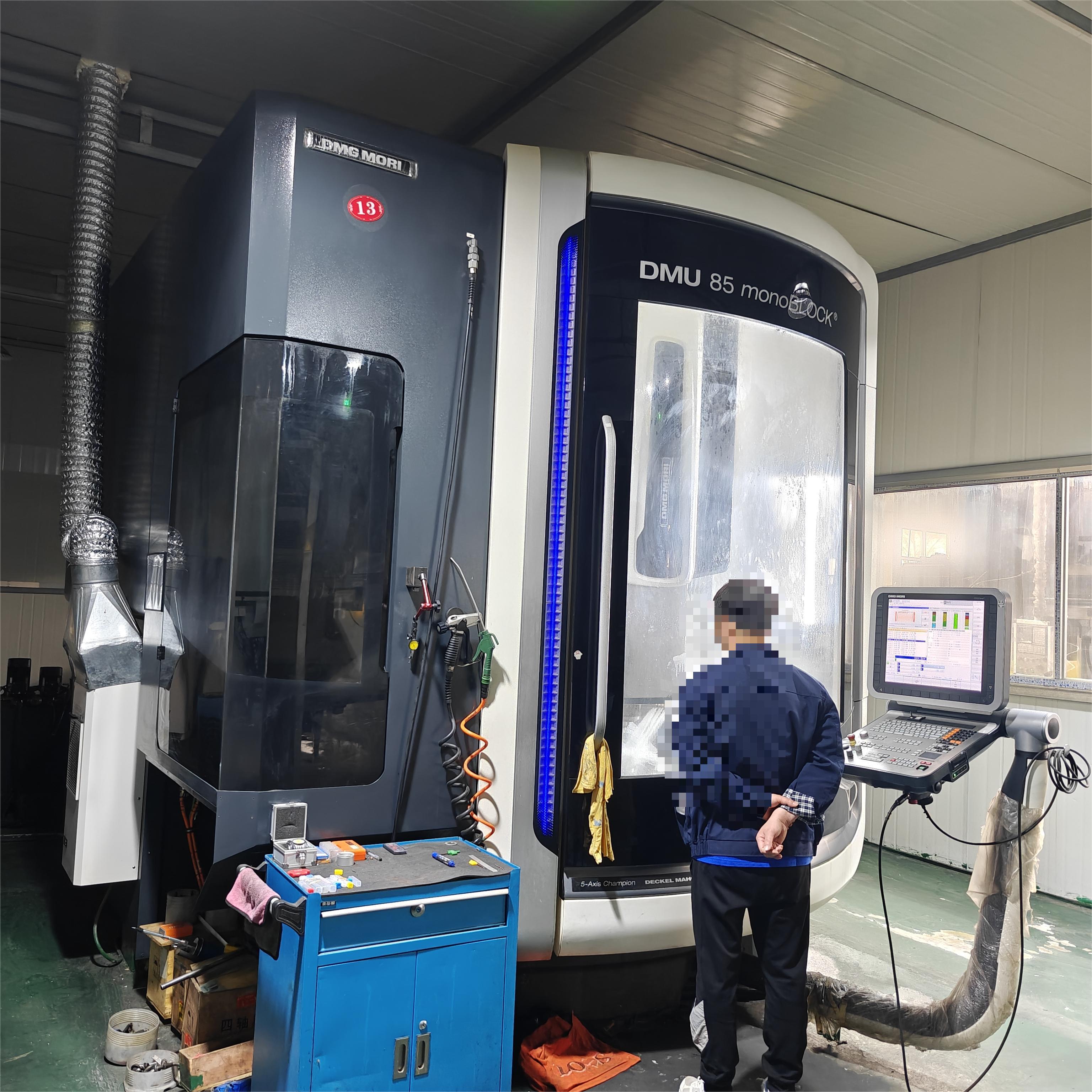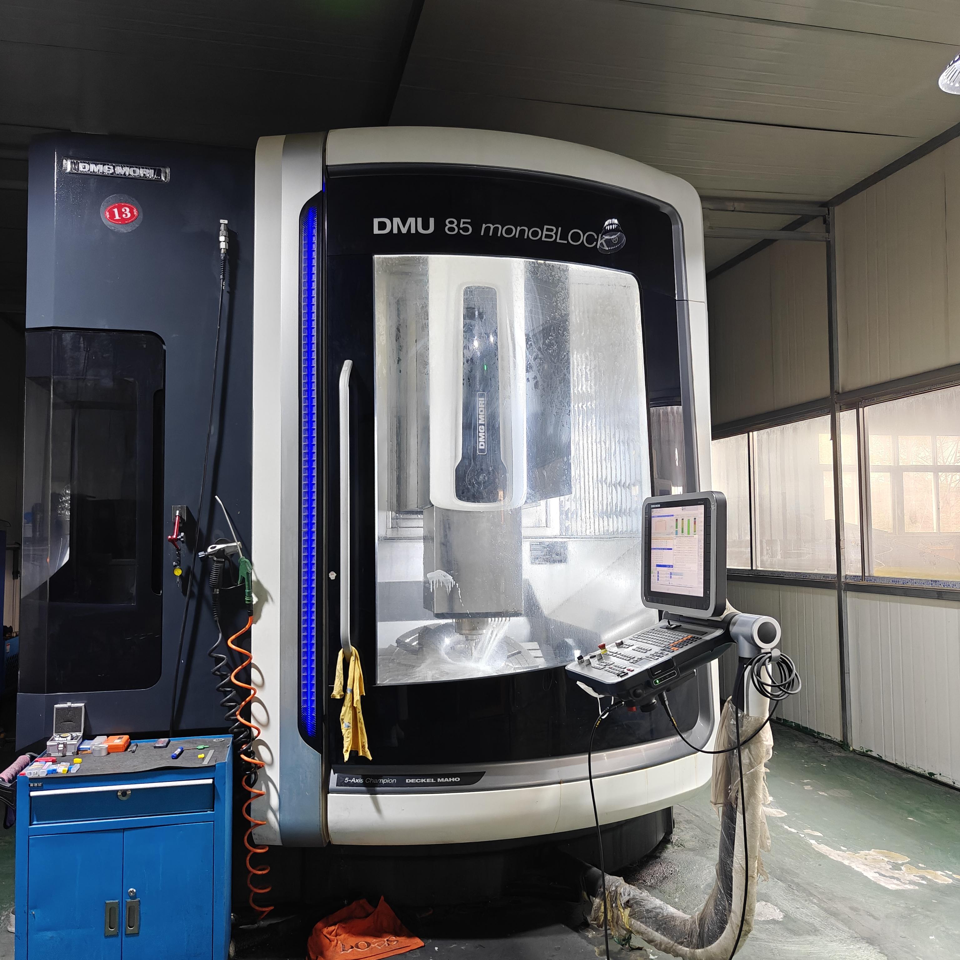 数控系统:海德汉三轴行程:935×850×650 mmA轴:-120°~+120°A轴分度精度:0.001C轴:360°(连续旋转)C轴分度精度:0.001最大加工直径:1040 mm最大加工高度:590 mm回转摆动工作台:工作台尺寸:850×750 mm工作台载重:1500 KG刚性工作台:工作台尺寸:1000×750 mm工作台载重:2000 KG刀库容量:30,ATC主轴:HSKA-100主轴转速:10000 转配置:配40公斤中心出水