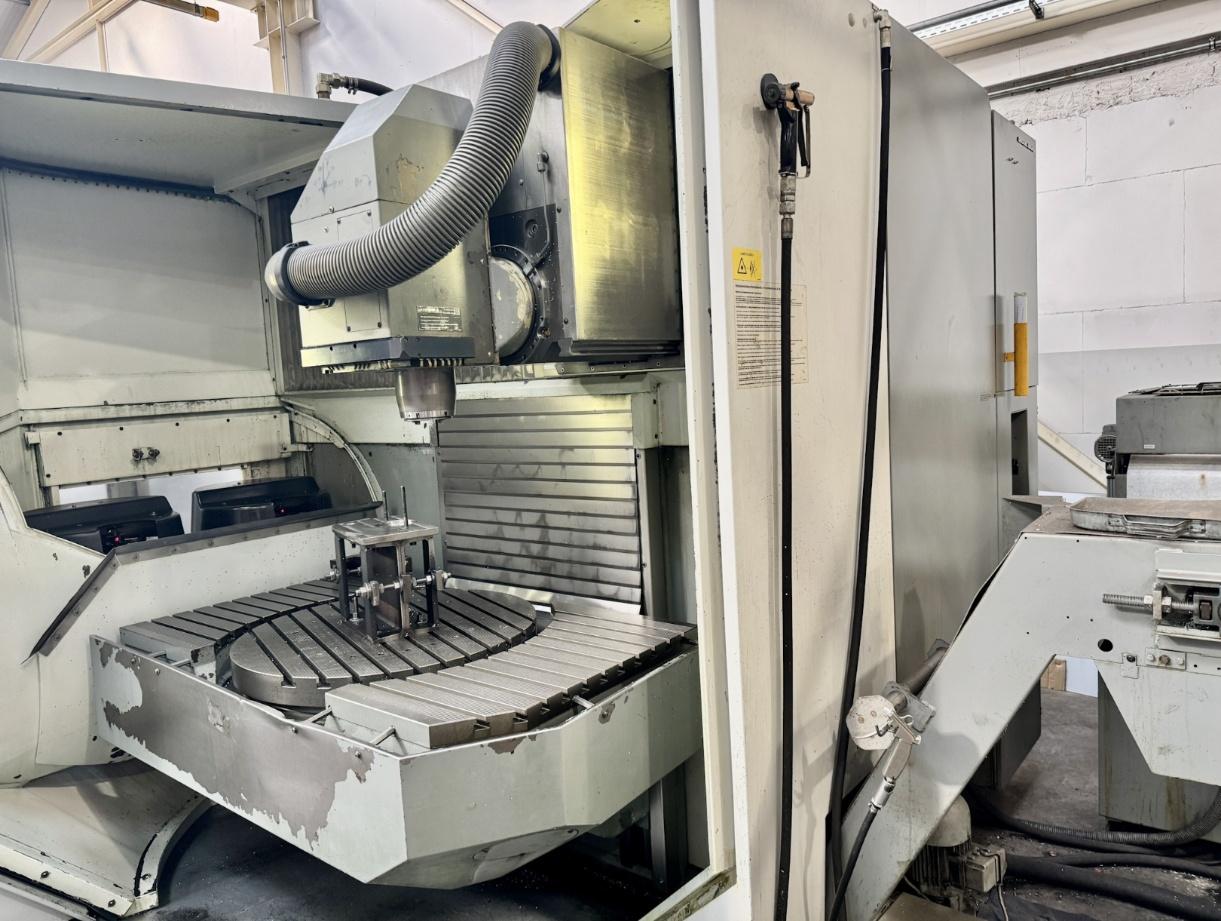 数控系统:海德汉 TNC530三轴行程:1150 * 710 * 710 mmB轴行程:-30°~120°C轴行程:360°主轴形式:SK40主轴转速:12000 rpm旋转台直径:800 mm刀库容量:32/24(可选),ATC配置:带中心出水带排屑机带纸带过滤旋转观察窗使用时间:32212hours