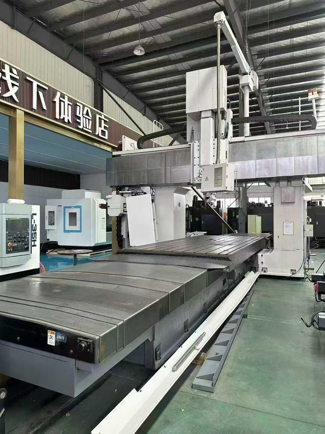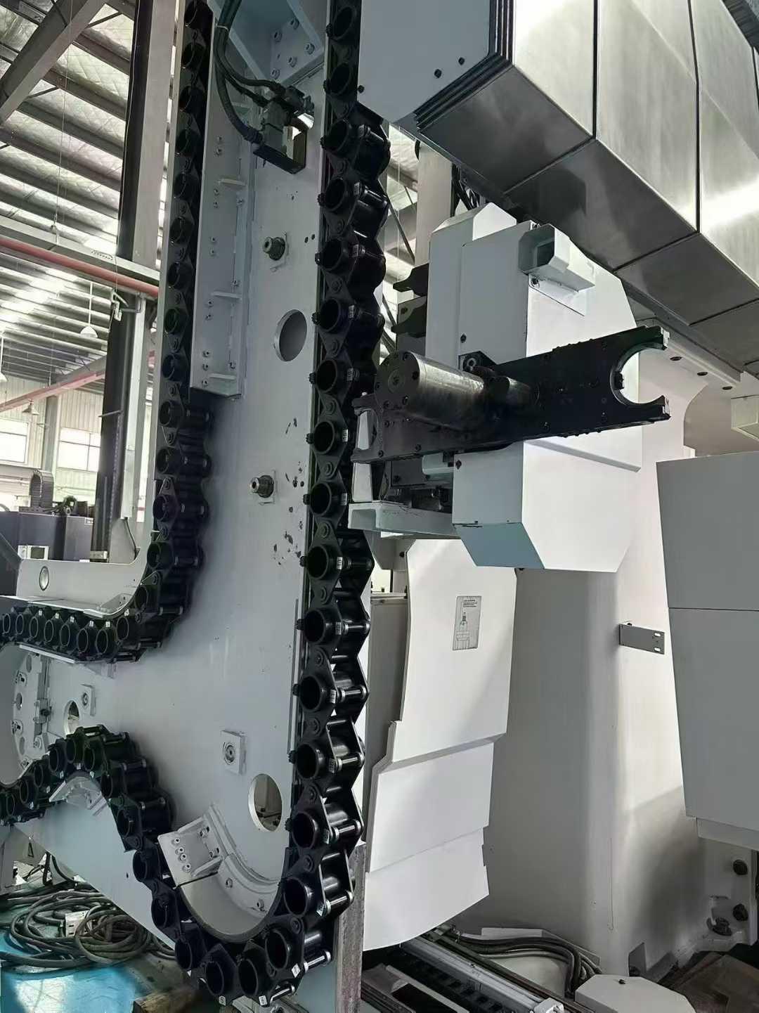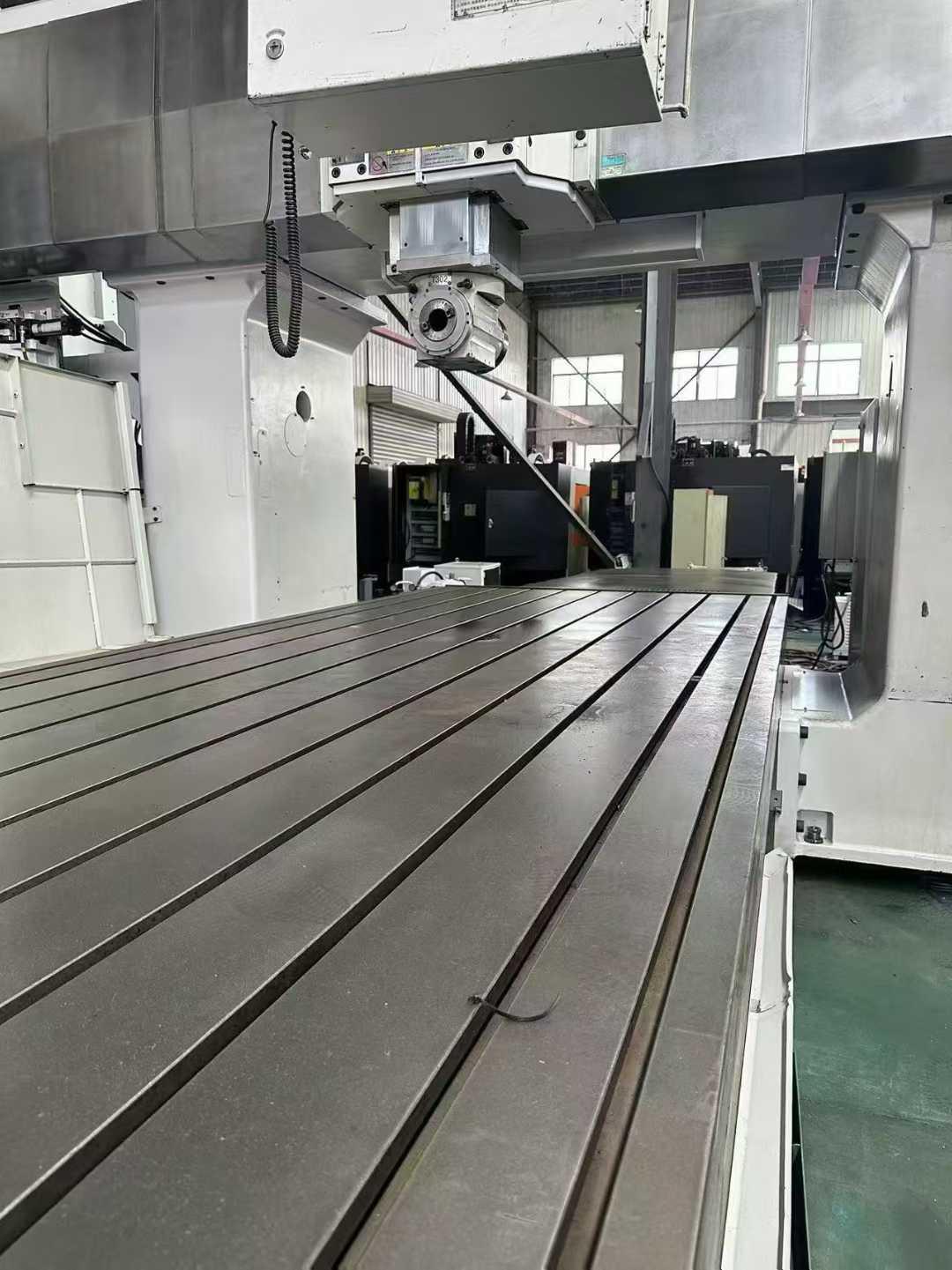 数控系统:OSP-P200MX*Y*Z*W轴行程:5000 * 2700 * 800 * 1300 mm工作台尺寸:5000*2000 mm工作台承重:22 tons刀库容量:70主轴锥度:CAT50主轴转速(立铣头):6000 rpm四轴全光栅