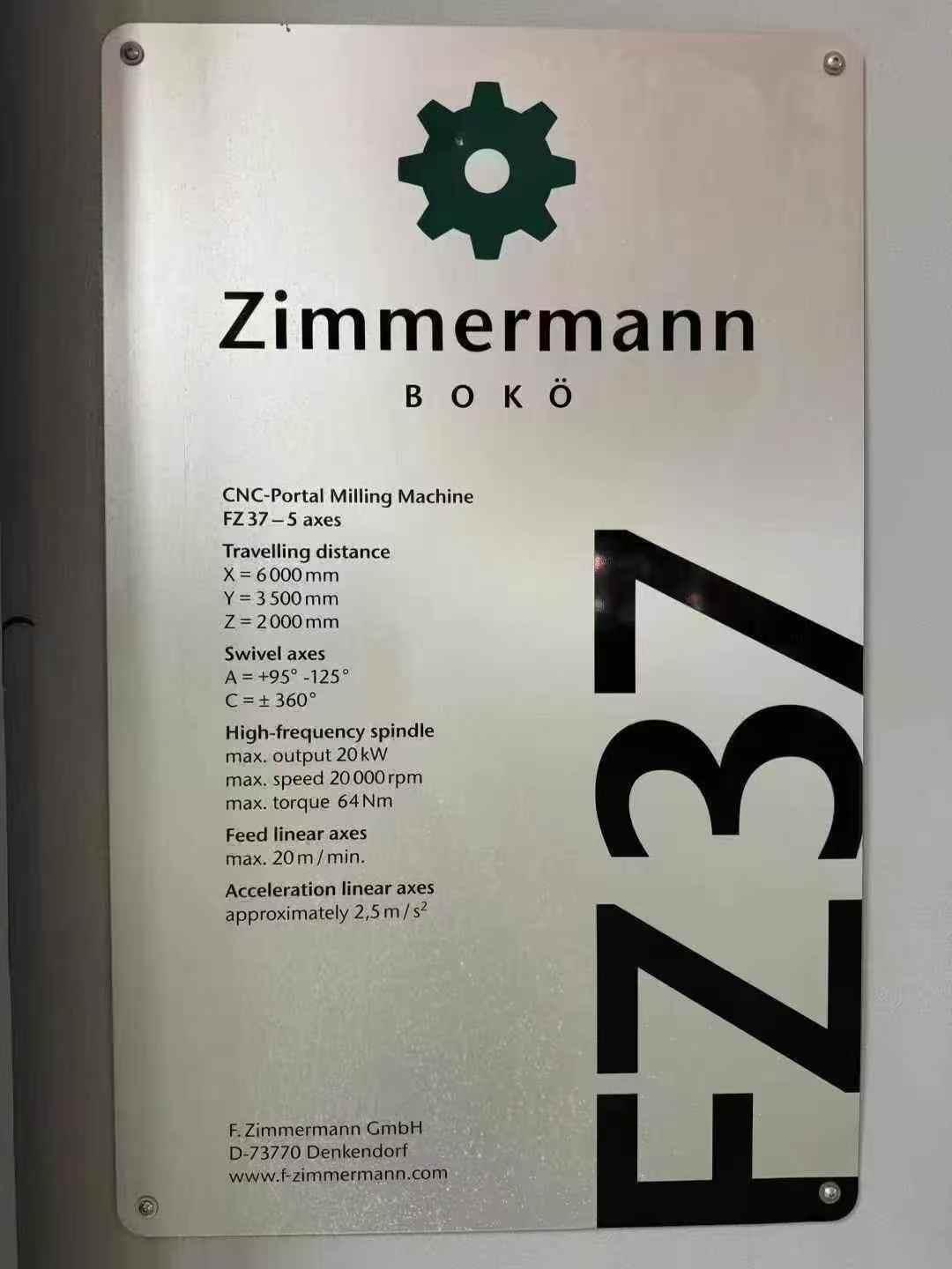 数控系统:西门子 840D三轴行程:6000 × 3500 × 2000 mm工作台尺寸:3500 × 6000 mm龙门宽度:4500 mm龙门高度:2300 mm主轴最高转速:18000 rpm主轴功率:20 kW最大扭矩:64 N·m刀柄类型:HSK63A轴回转范围:-95° ~ +125°C轴回转范围:360°
