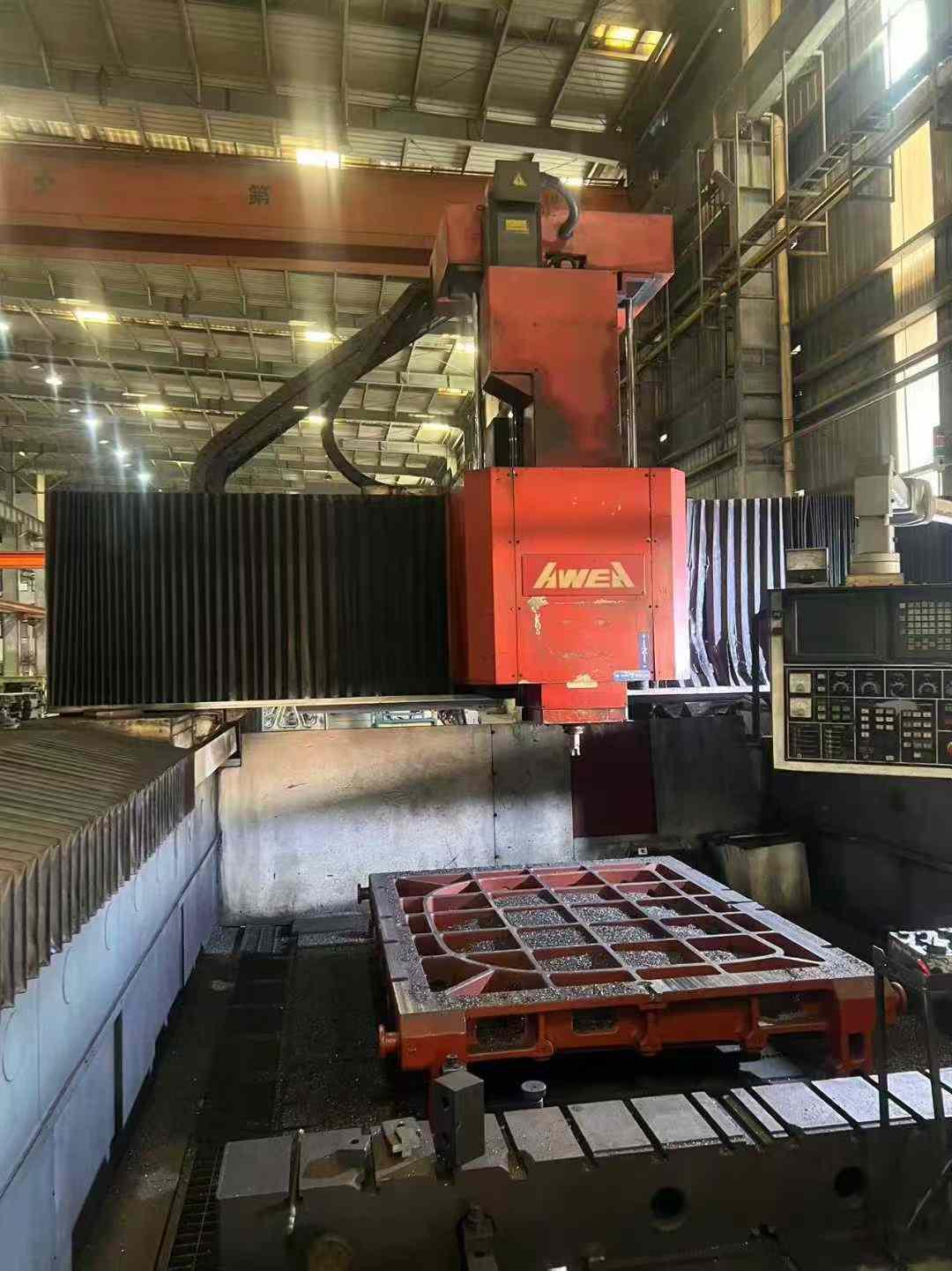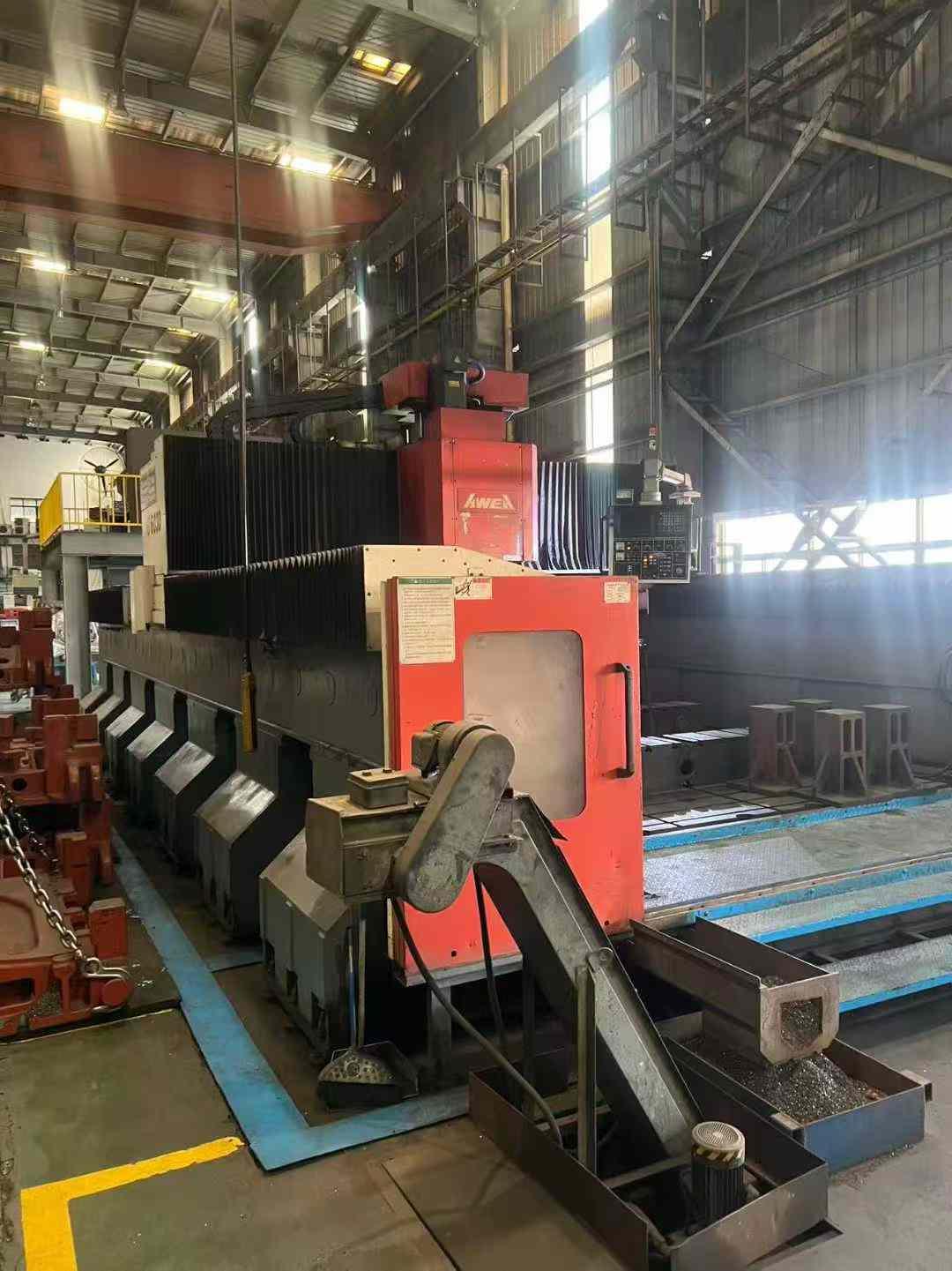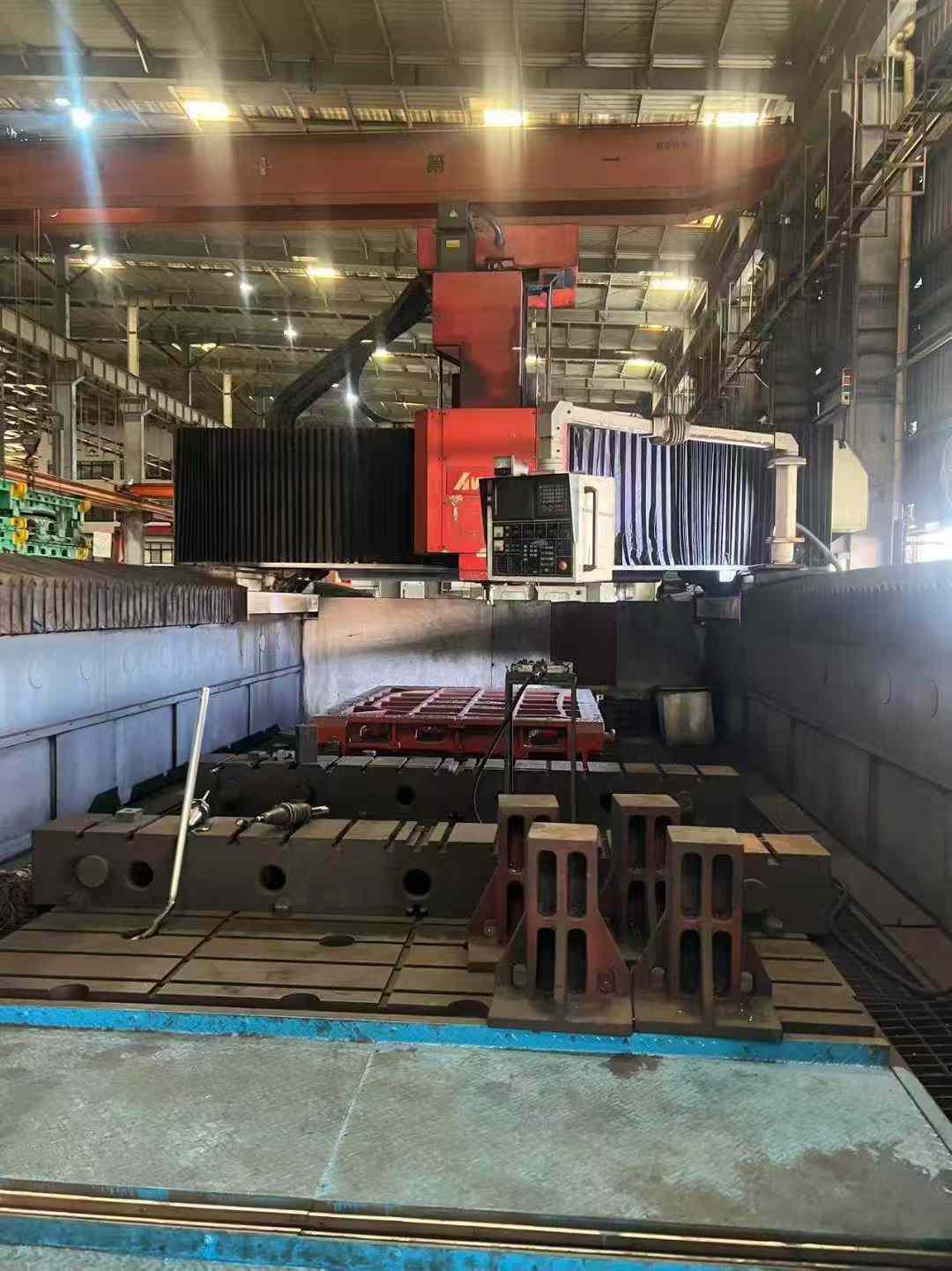数控系统:发那科 18i工作台尺寸:2800 × 6000 mm龙门高度(门高):1450 mm龙门宽度(门宽):3800 mm三轴行程(X/Y/Z):6000 × 3000 × 1000 mm主轴规格:BT50,齿轮传动主轴主轴转速:7000 rpmY/Z 轴配备光栅尺反馈配置:两个全自动铣头主轴采用油冷系统