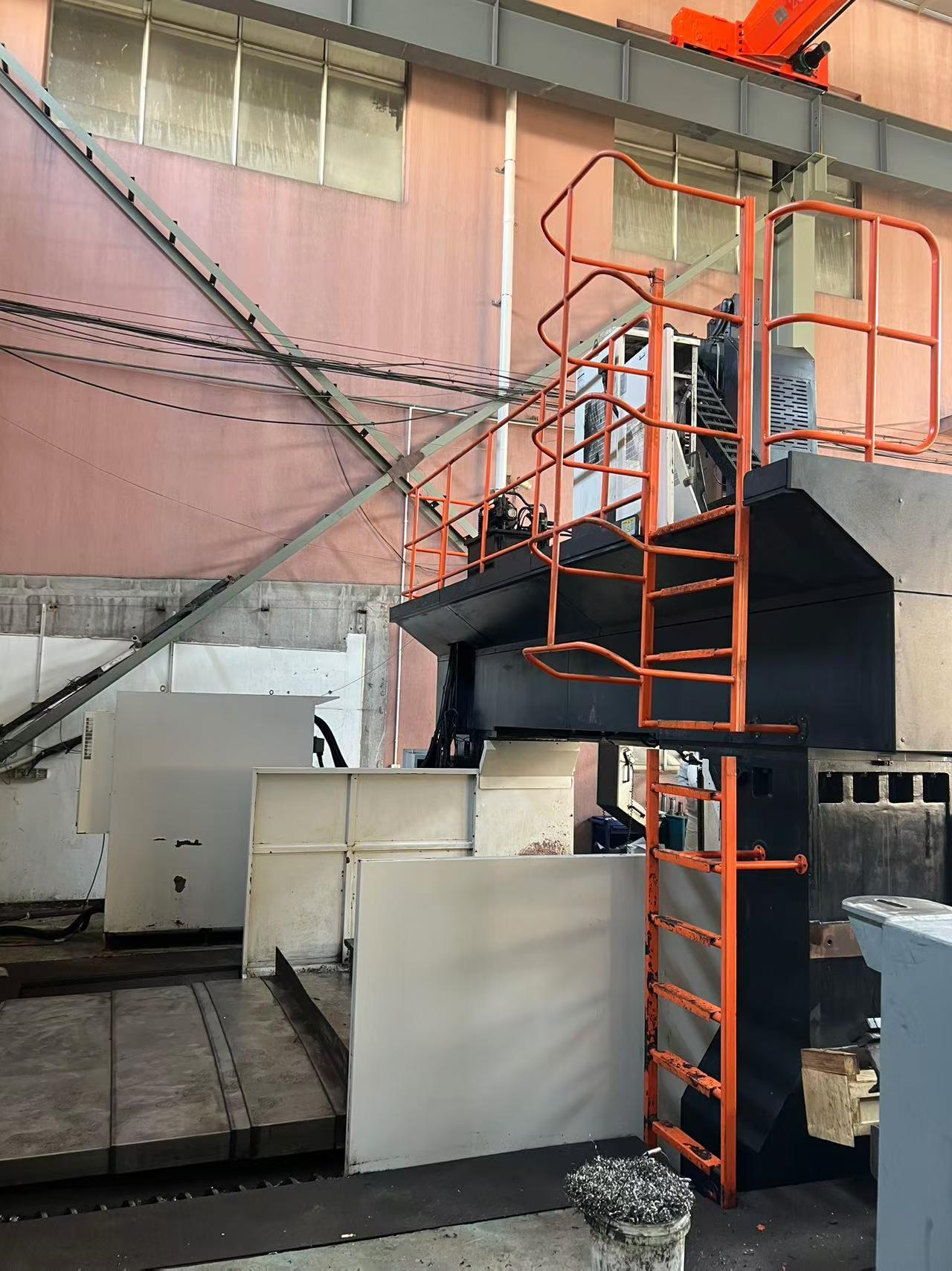 数控系统:发那科MF 三轴行程:4200 * 3200 * 1000 mm工作台尺寸: 2500 * 4000 mm龙门宽: 3200 mm龙门高: 1500 mm主轴: BT50,齿轮头防滑枕尺寸: 400 * 400 mm